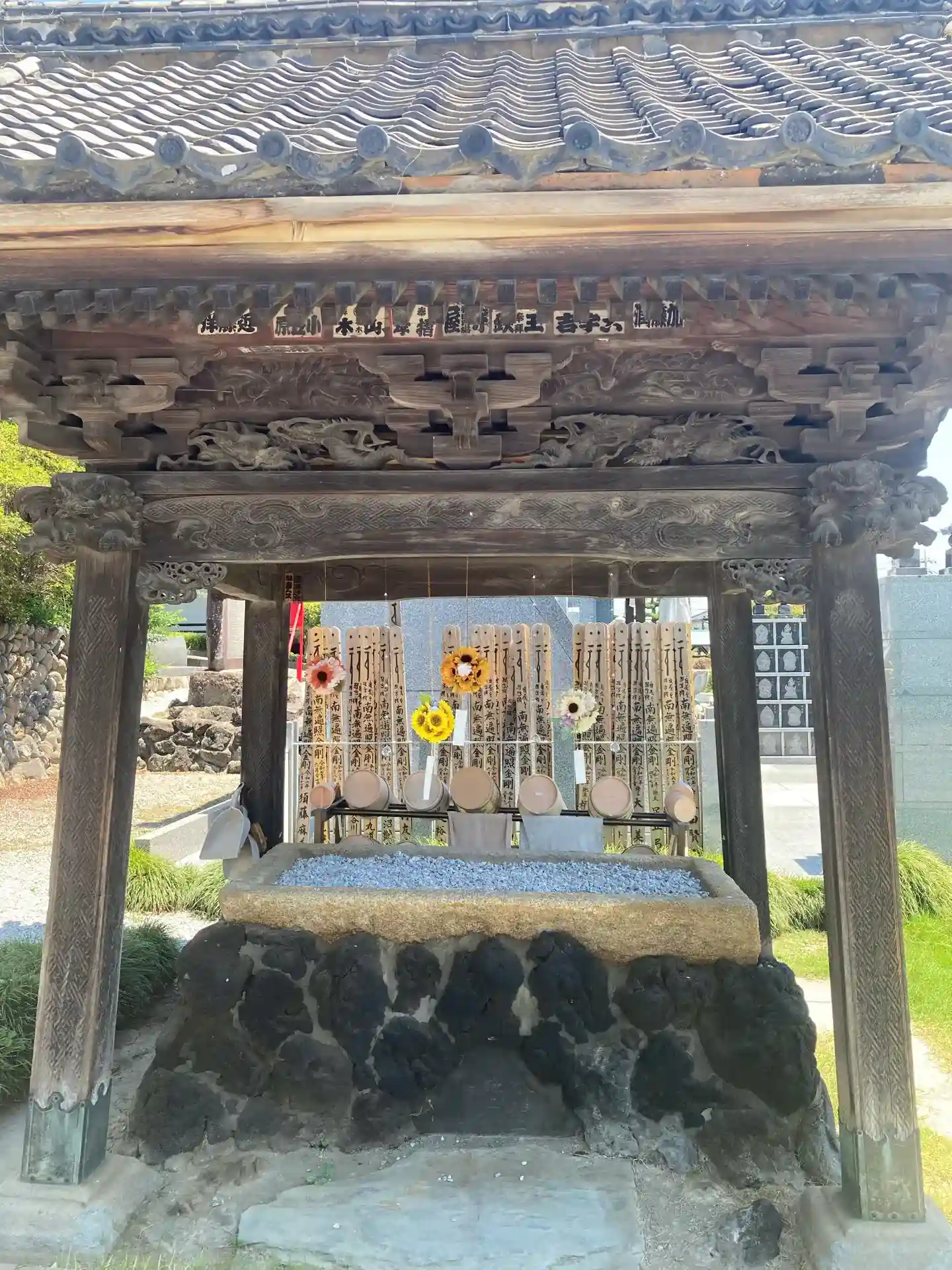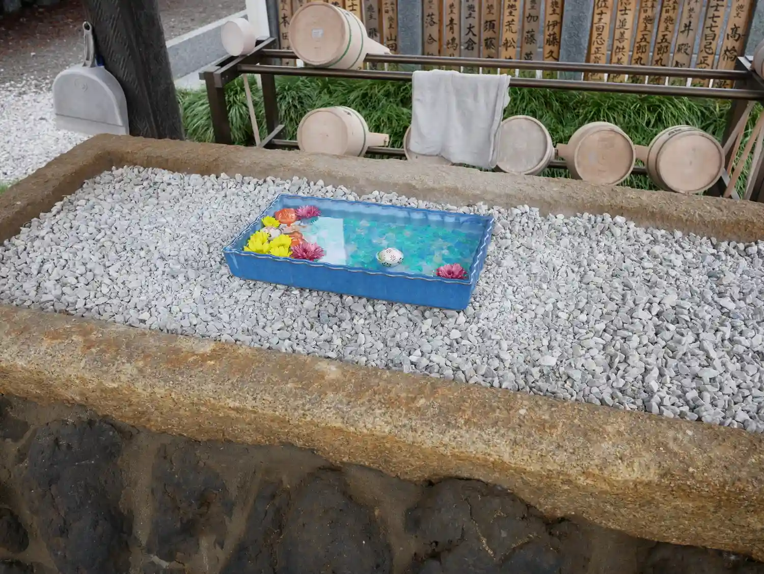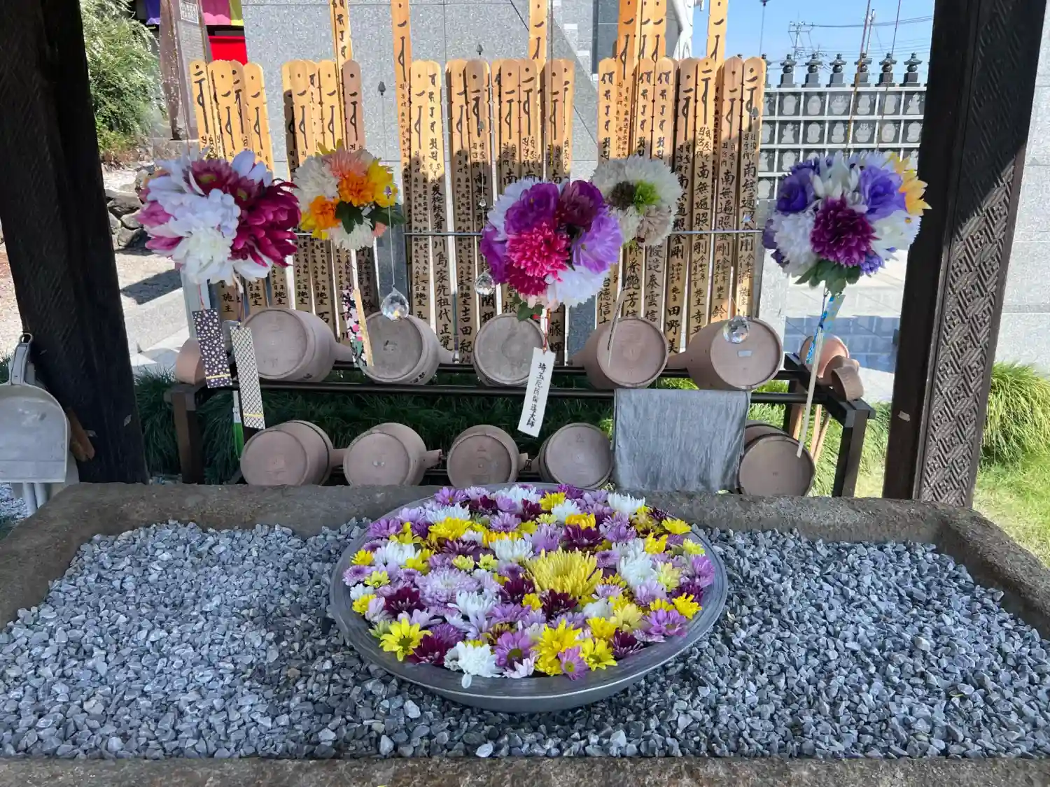 本日は樹木葬近くに花手水もご用意してあります…