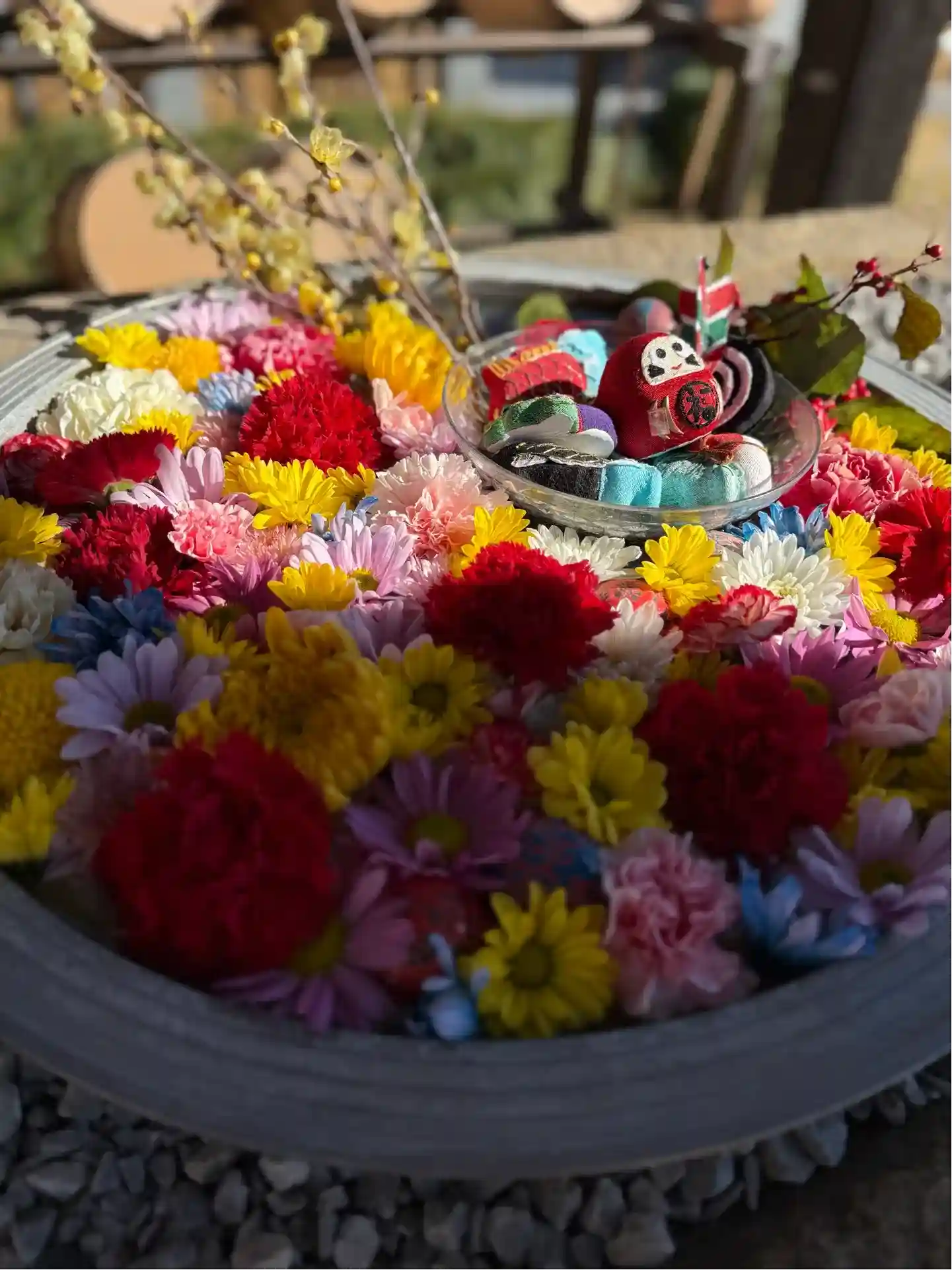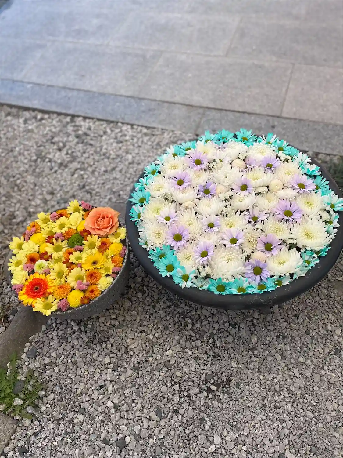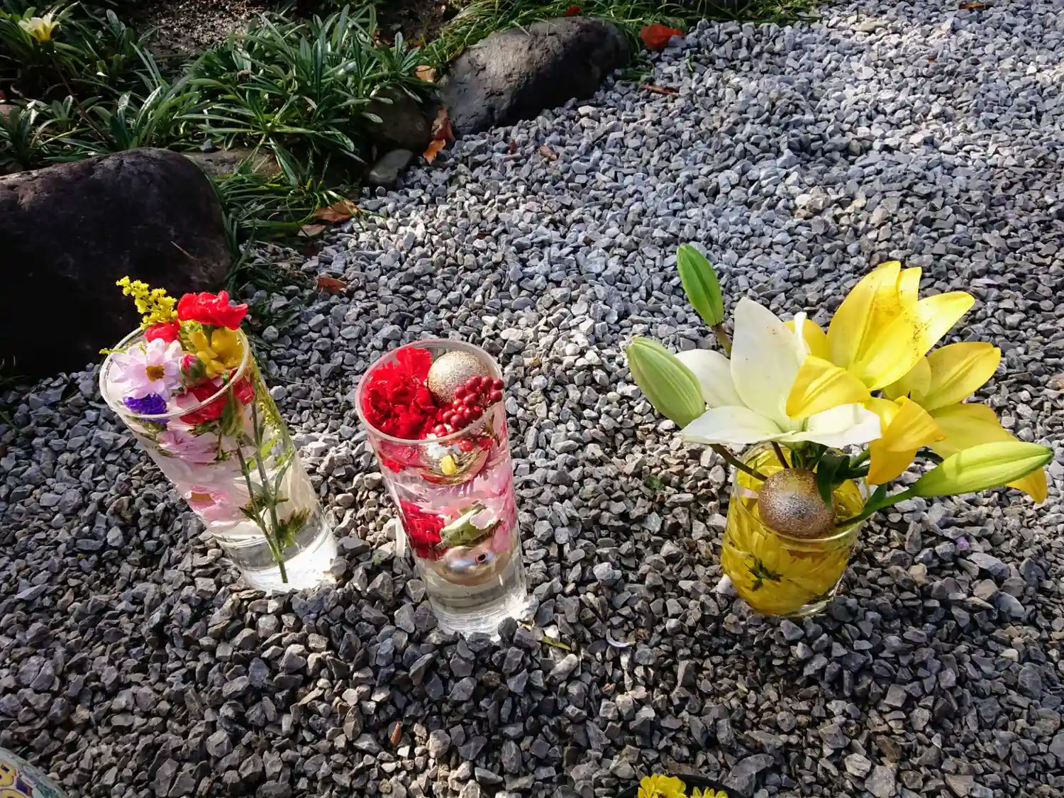 本日は樹木葬近くに花手水もご用意してあります…