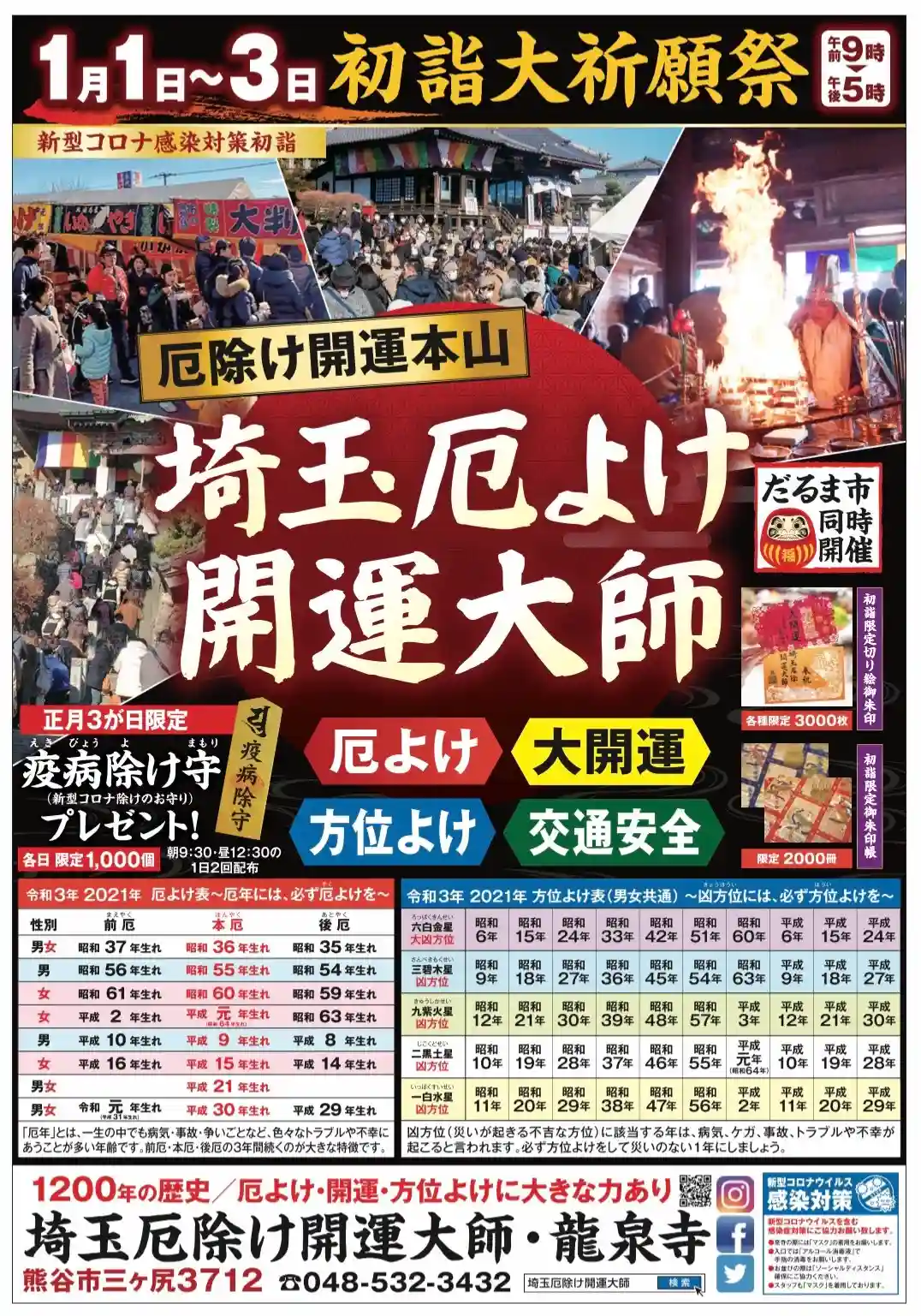 関東で唯一、厄除けと開運のご利益を同時にいただける埼玉厄除け開運大師・龍泉寺。