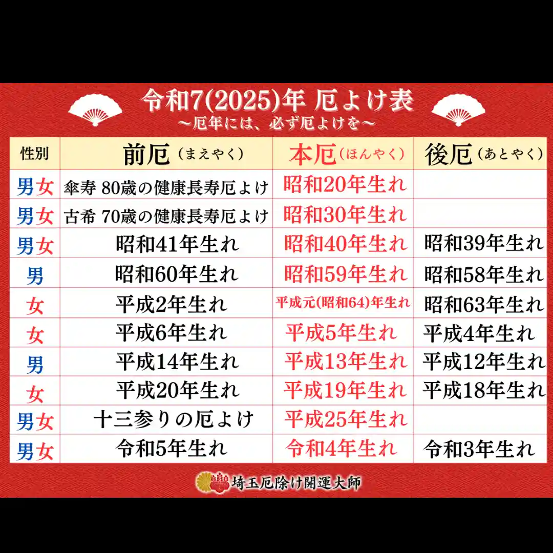 2020年 厄除け表