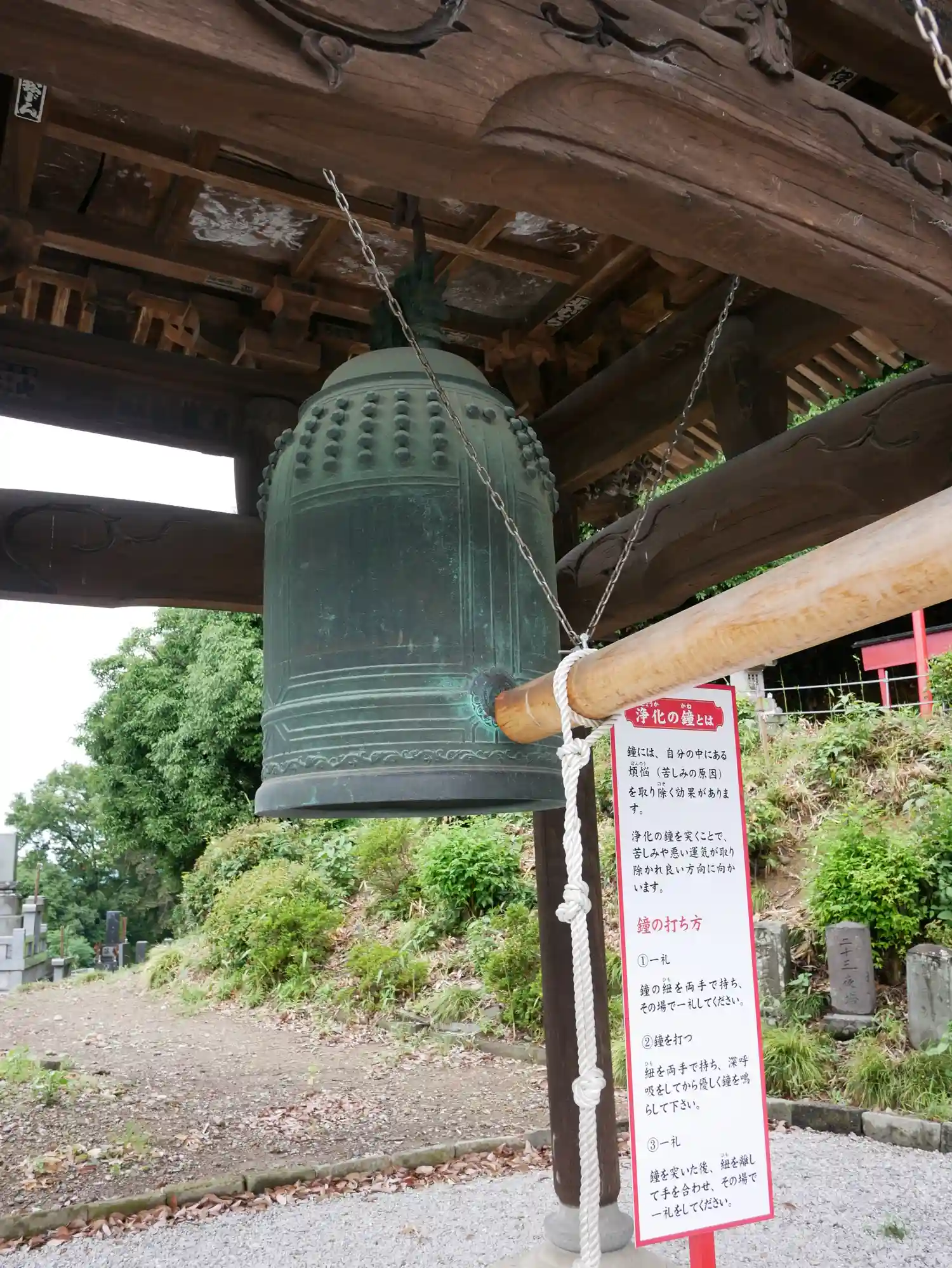鐘が撞けます。そっと撞いたつもりでも、大きな音でびっくりしました。