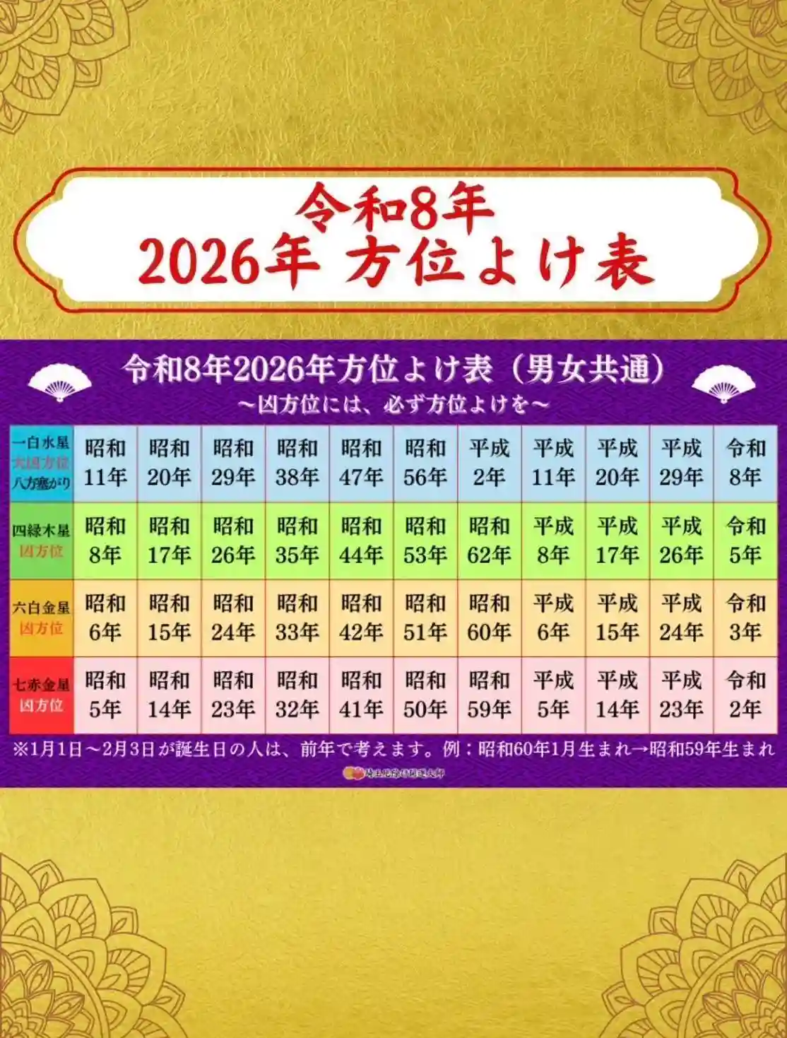 2020年厄除け表