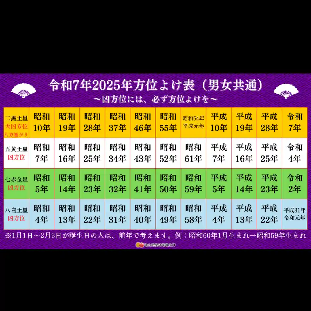凶方位に該当されている方は方位よけをお受けください。