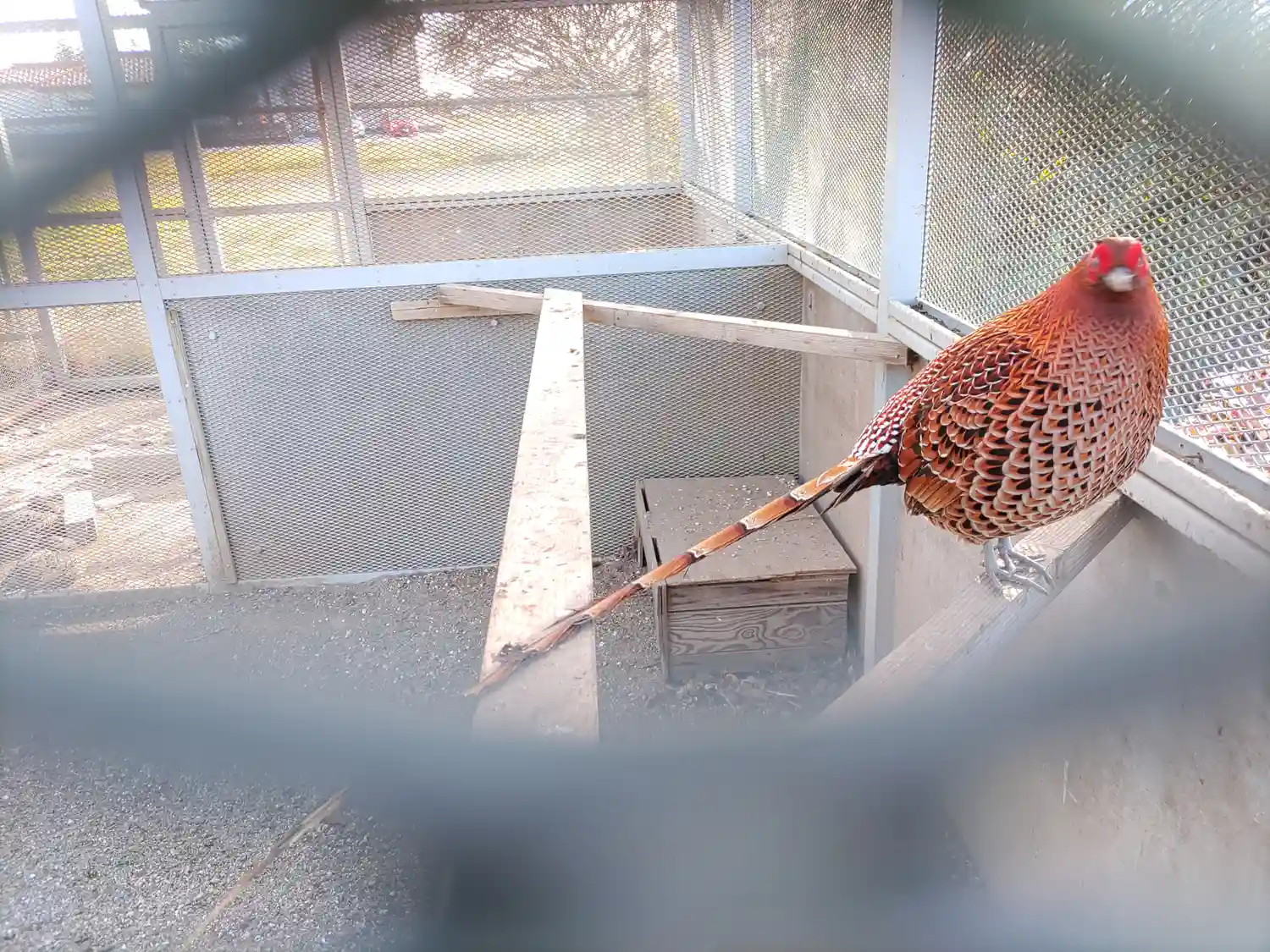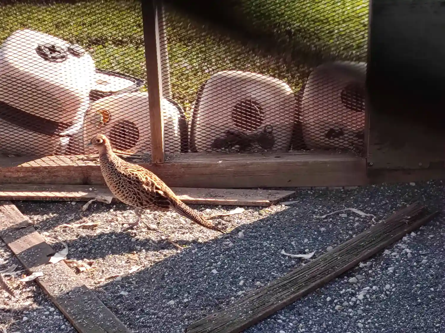 境内にはケージが4箇所あり、雉子や水鳥が飼われていて、どちらも人懐っこいで…