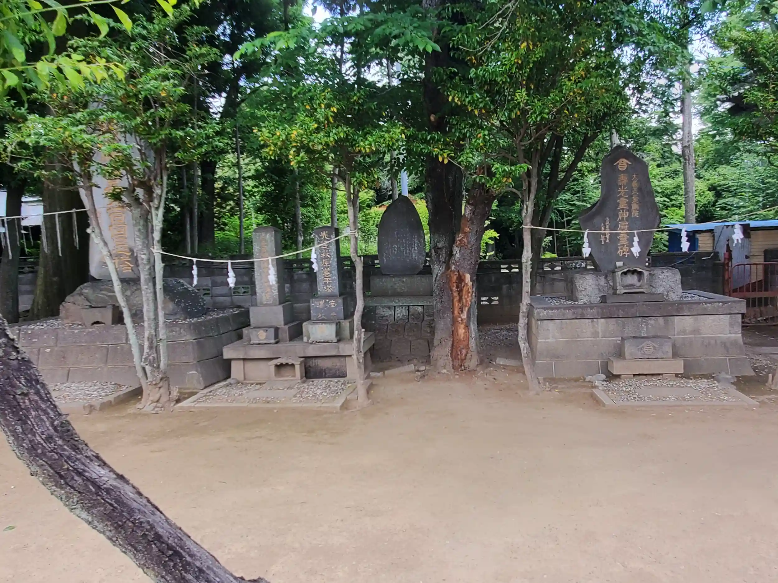 右の方に並ぶ霊神碑群