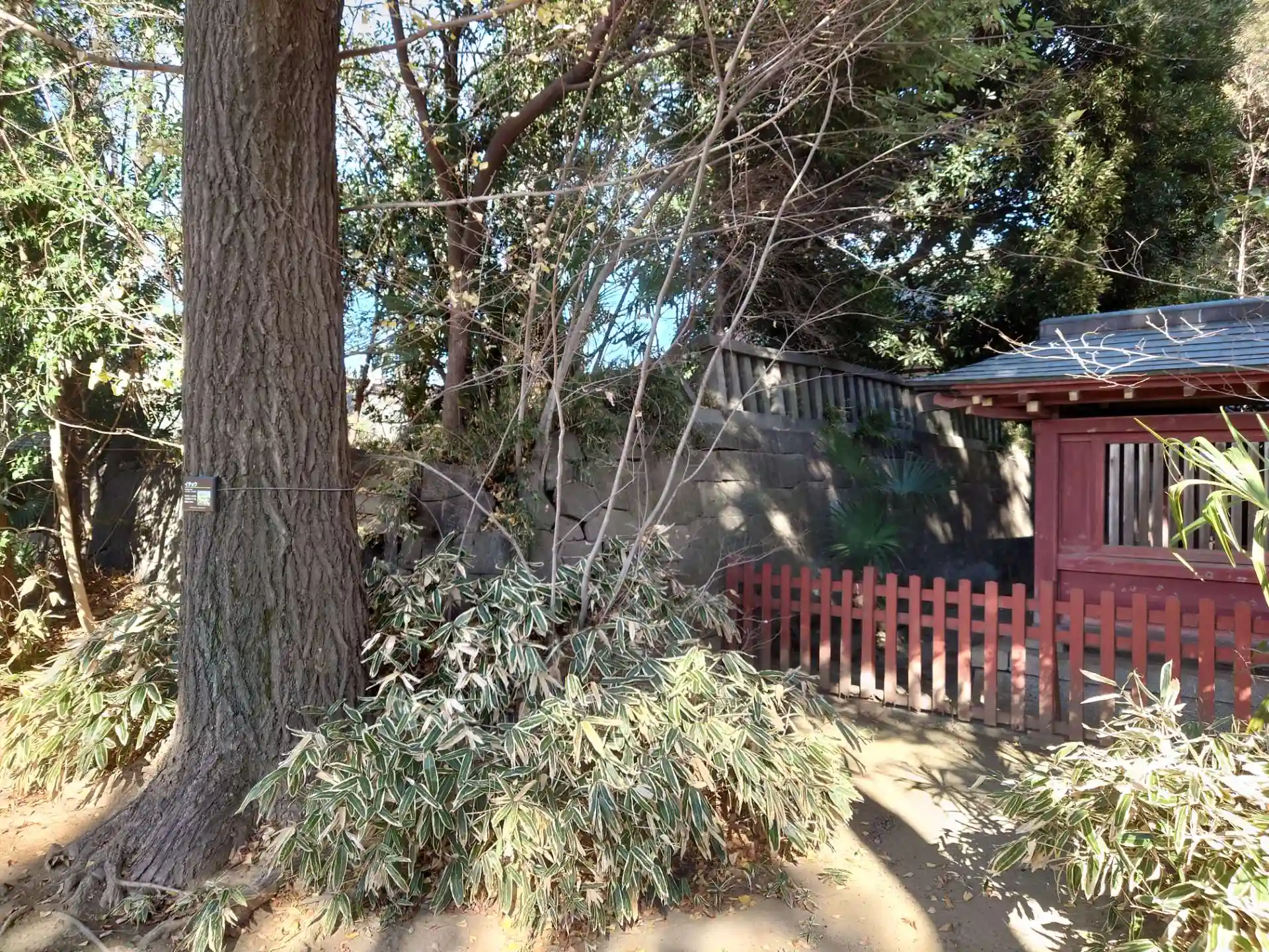 本殿裏も石垣があり、こんもりとしています。古墳でしょうか?