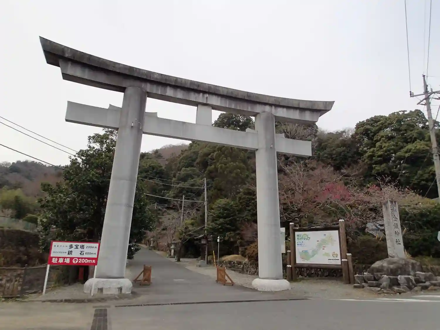 参道を少し進むと<二の鳥居>。クルマやバイクは左側をしばらく進むと駐車場がある。
