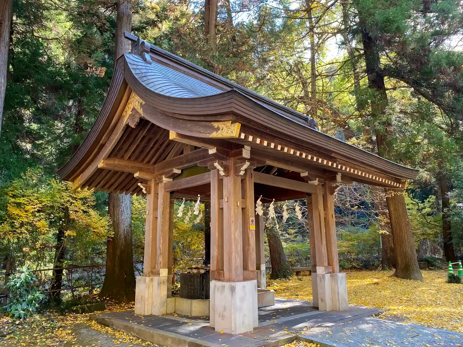 国道沿いにある<一の鳥居>と<社号標>。 ※美しい紅葉は2020年のもの。2021年はこれからかも。