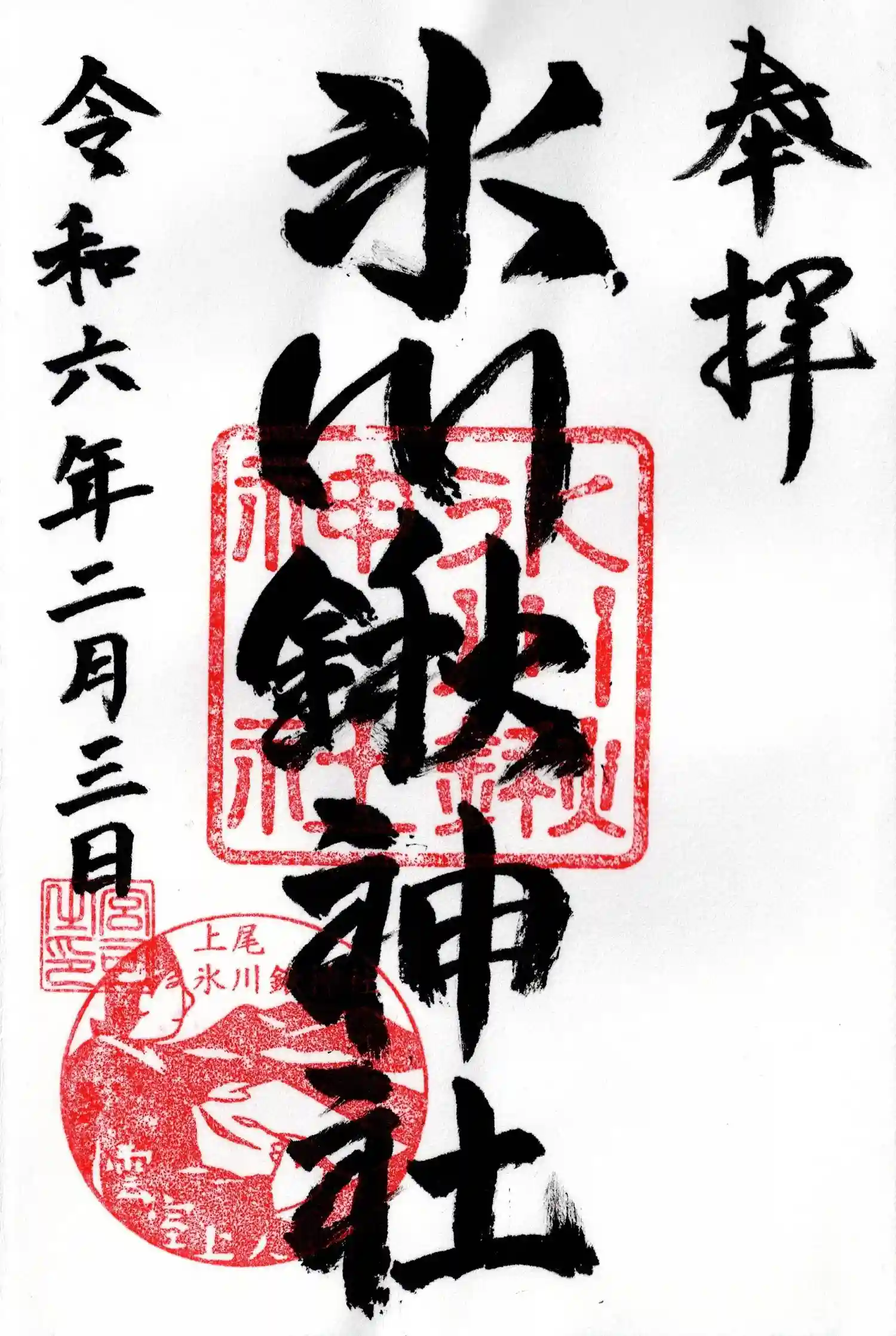 上尾 氷川鍬神社 御朱印 お書き入れ