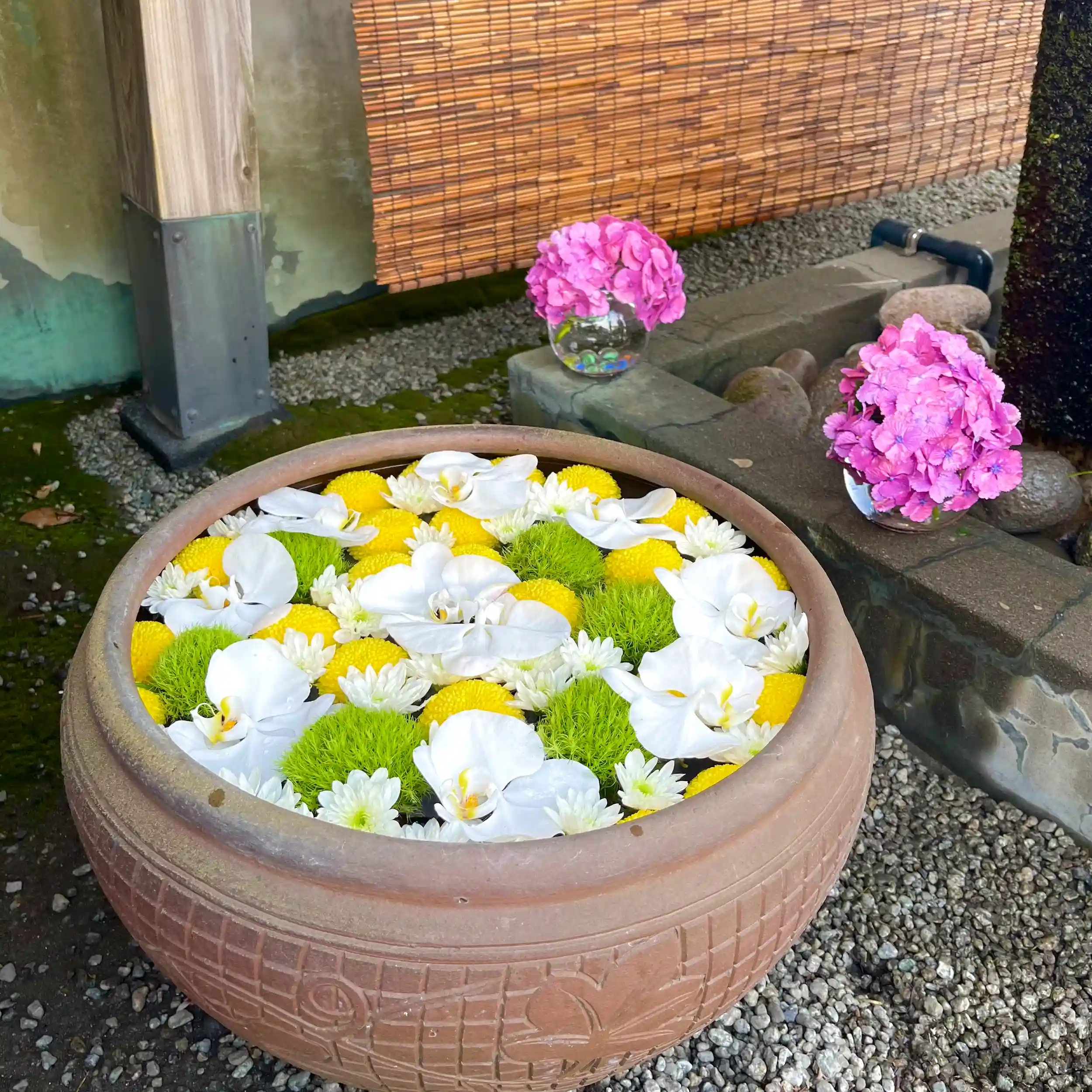 花手水のお花を入れ替えました