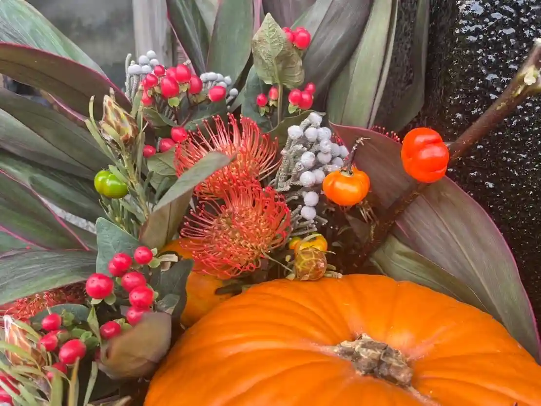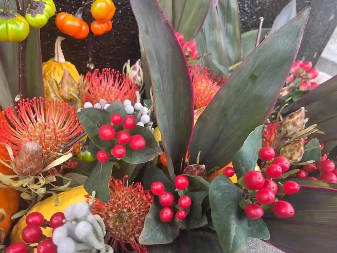 手水舎のお花を入れ替えいたしました。