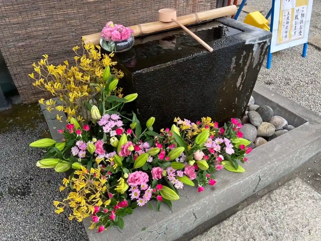 本日、手水舎のお花の入れ替えをいたしました。