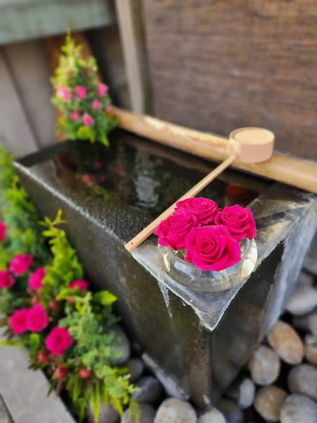 手水舎のお花の入れ替えをいたしました