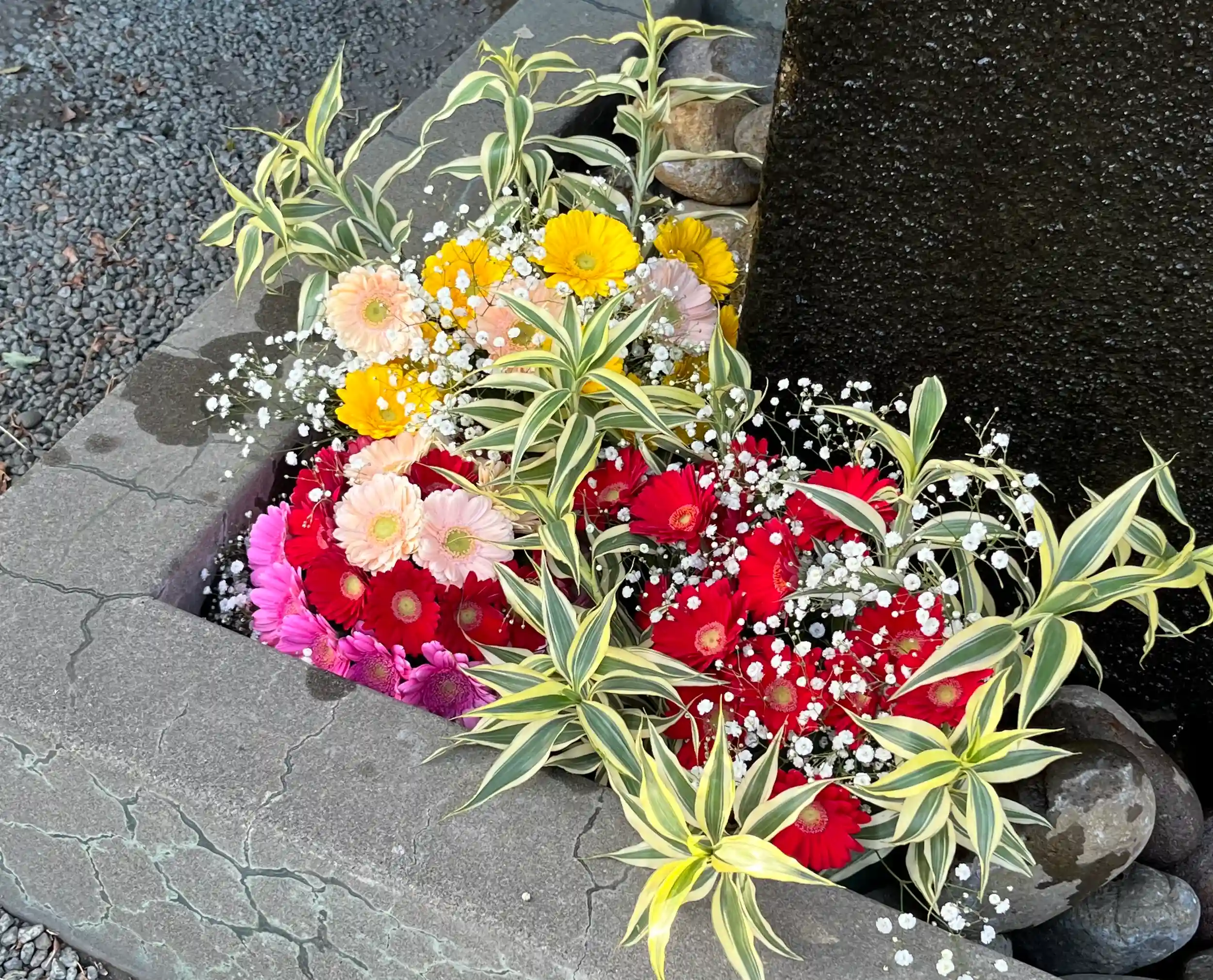 手水舎のお花の入れ替えをいたしました。