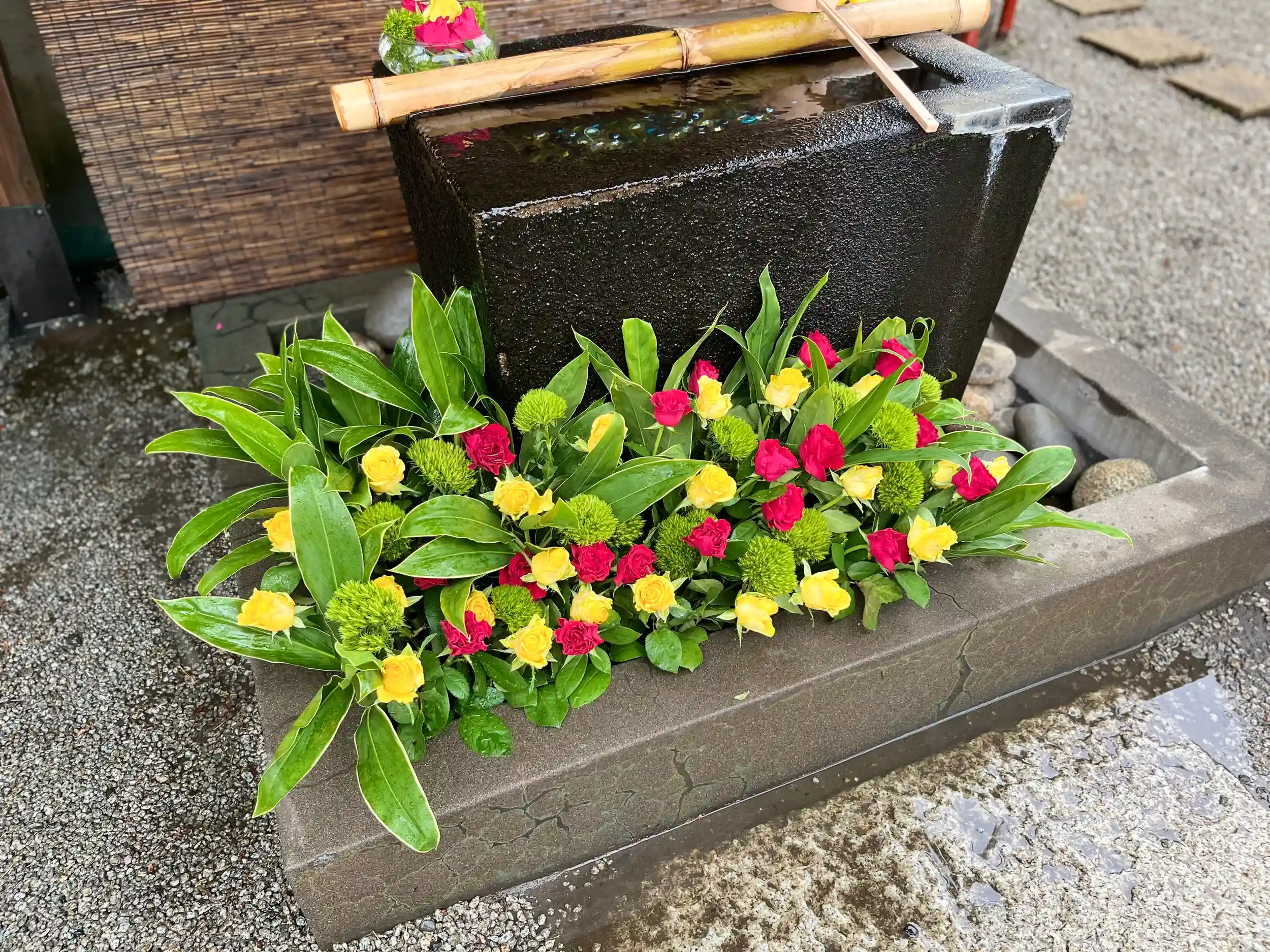 手水舎のお花の入れ替えをいたしました。