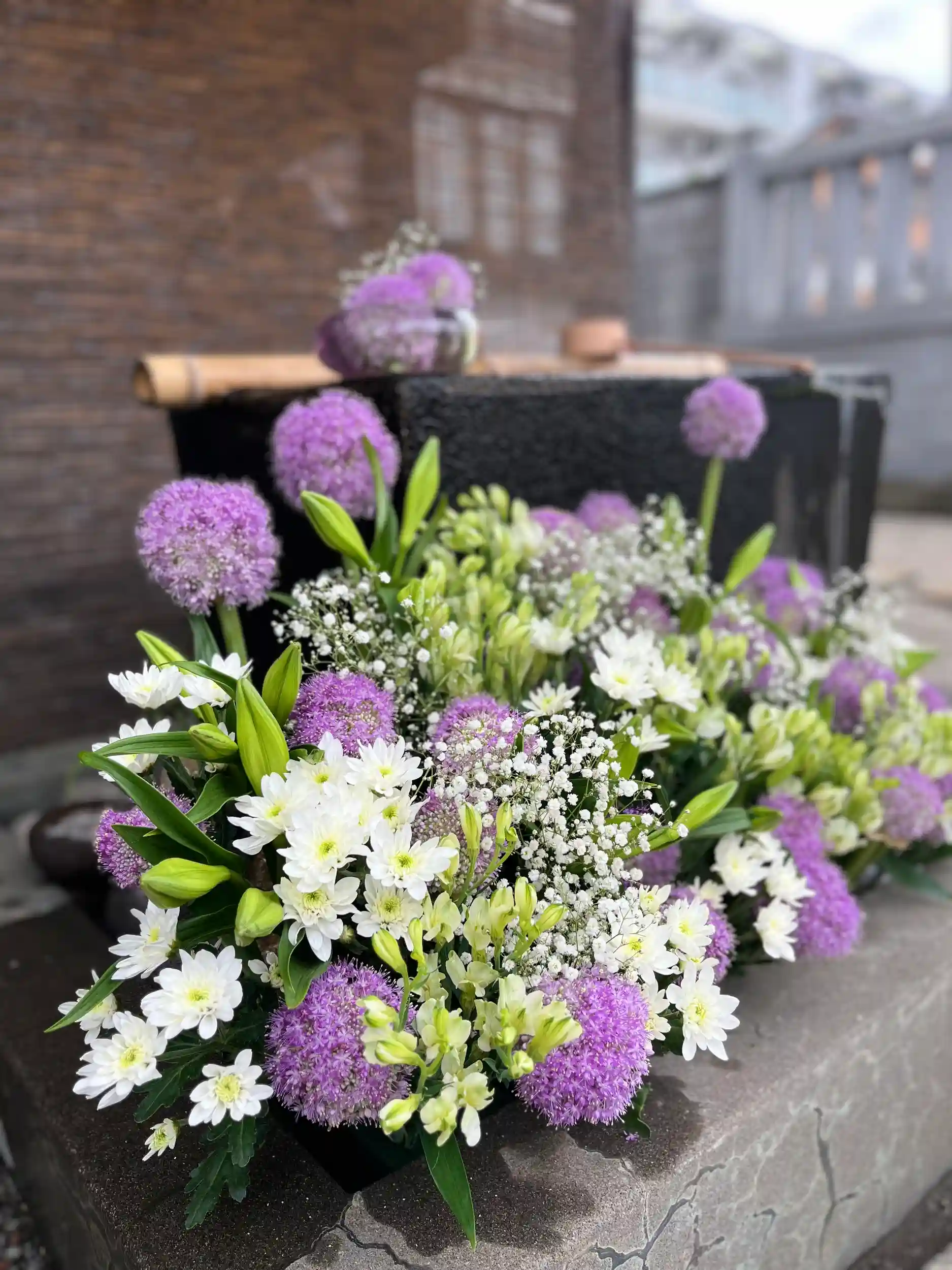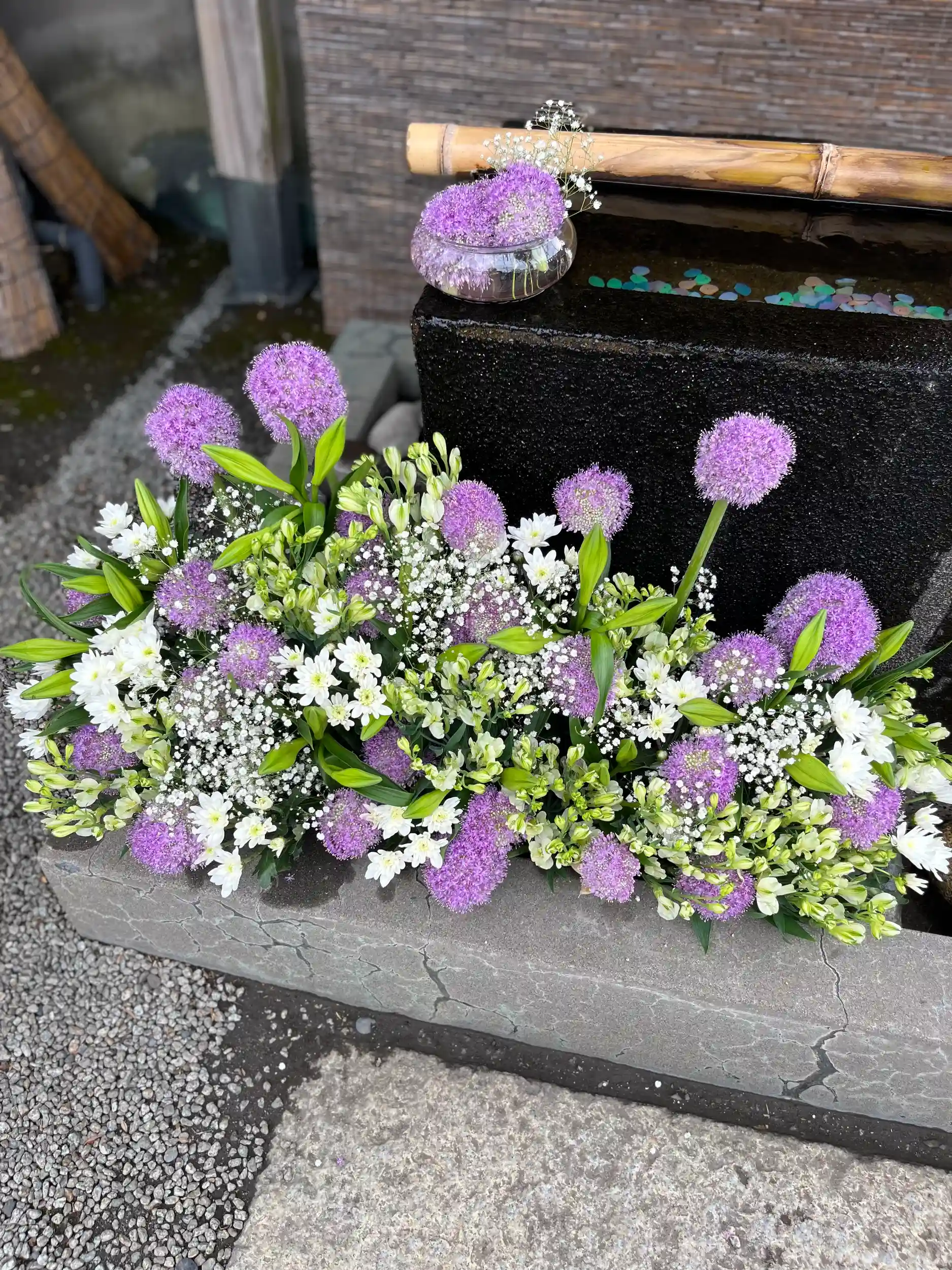 手水舎のお花の入れ替えをいたしました。