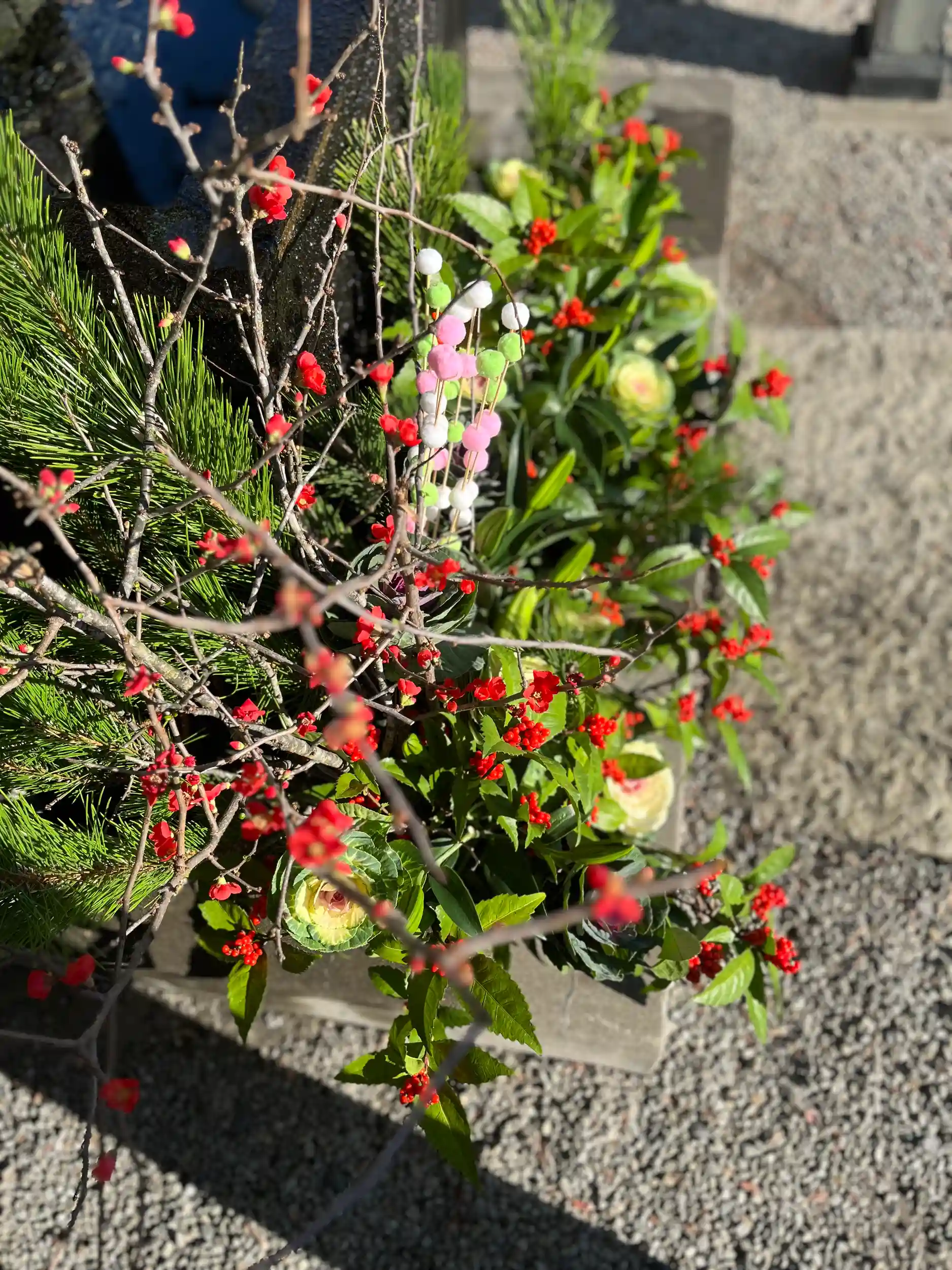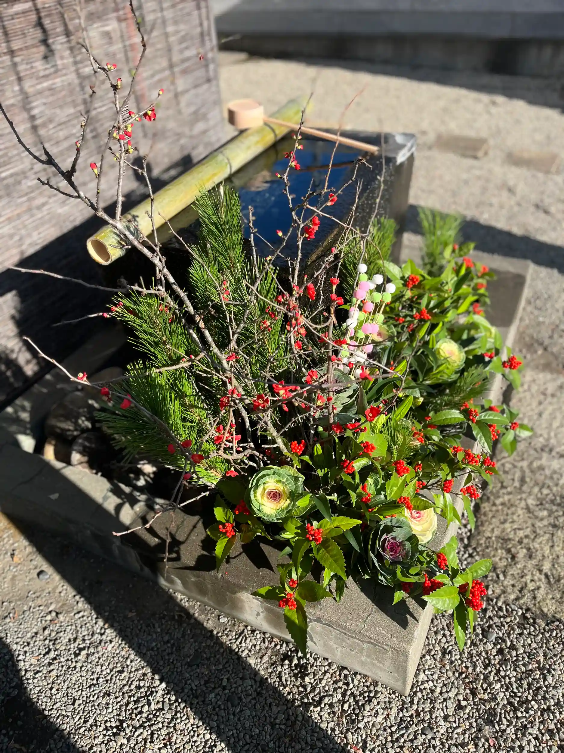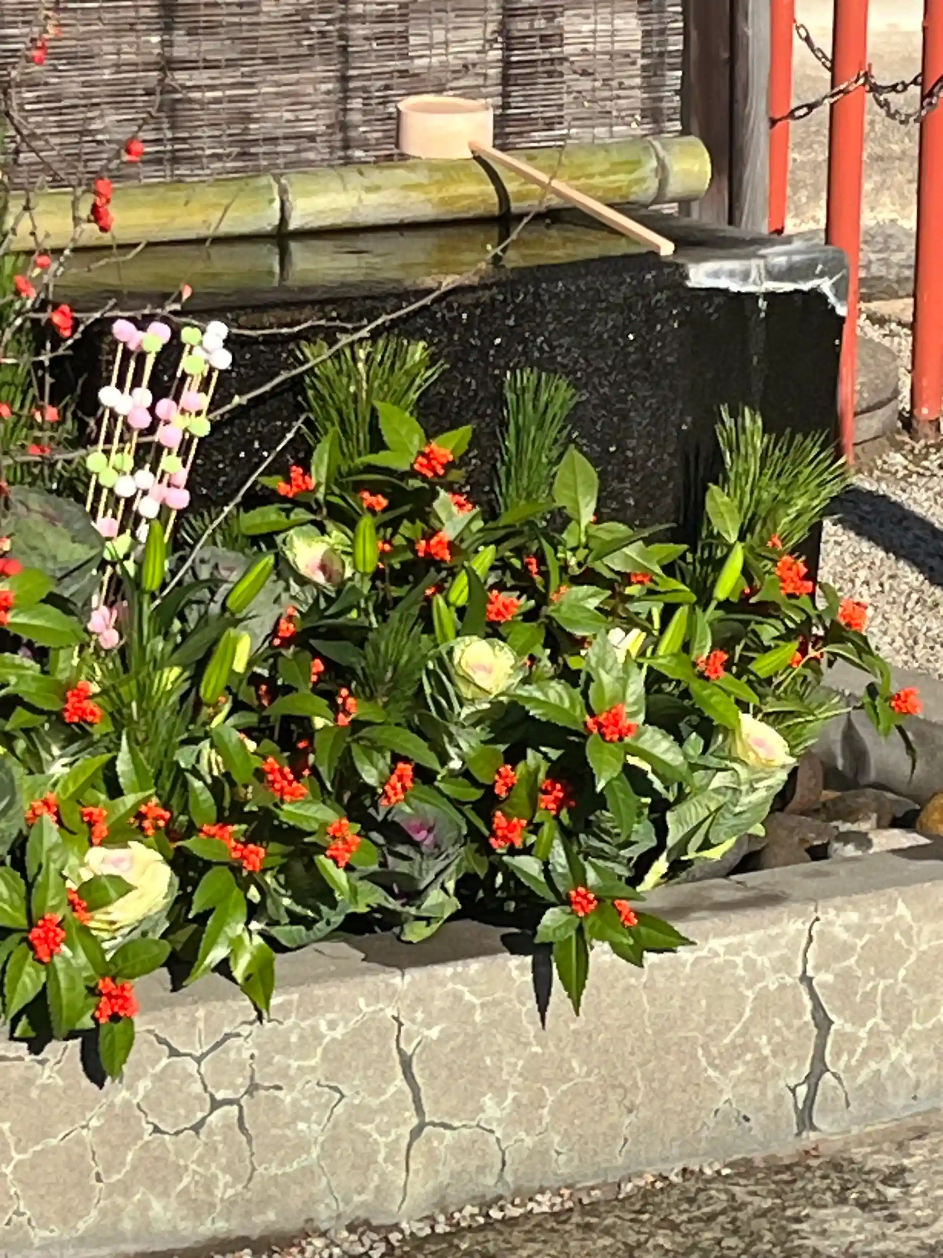 手水舎のお花の飾り付けをいたしました。