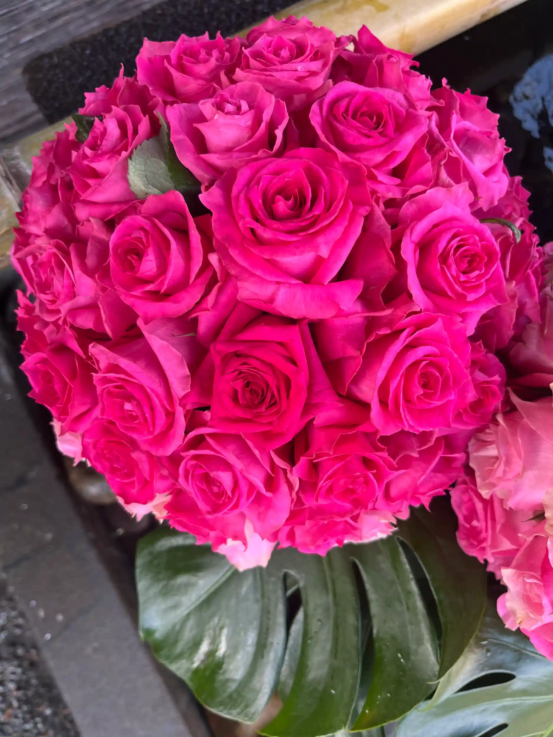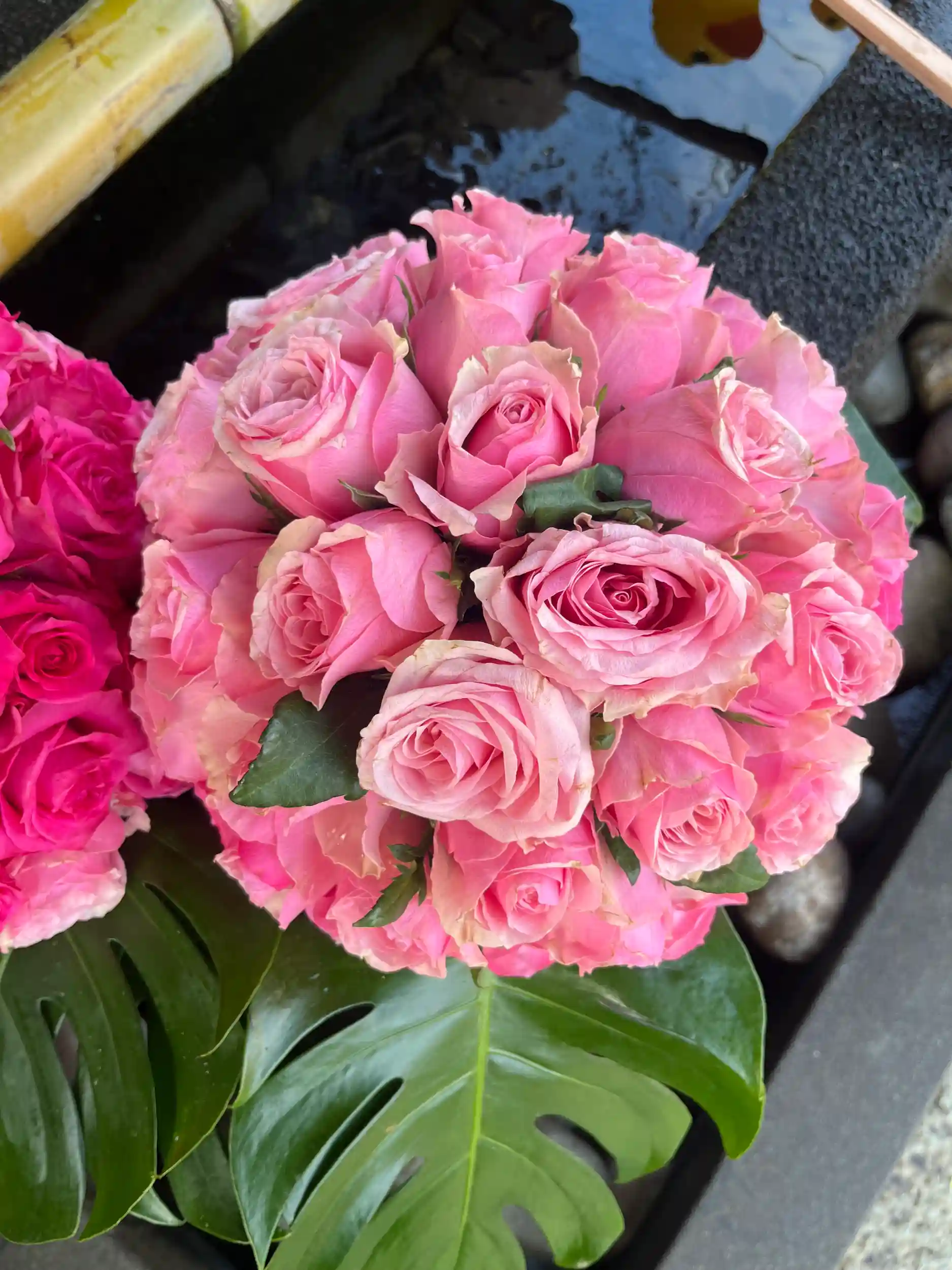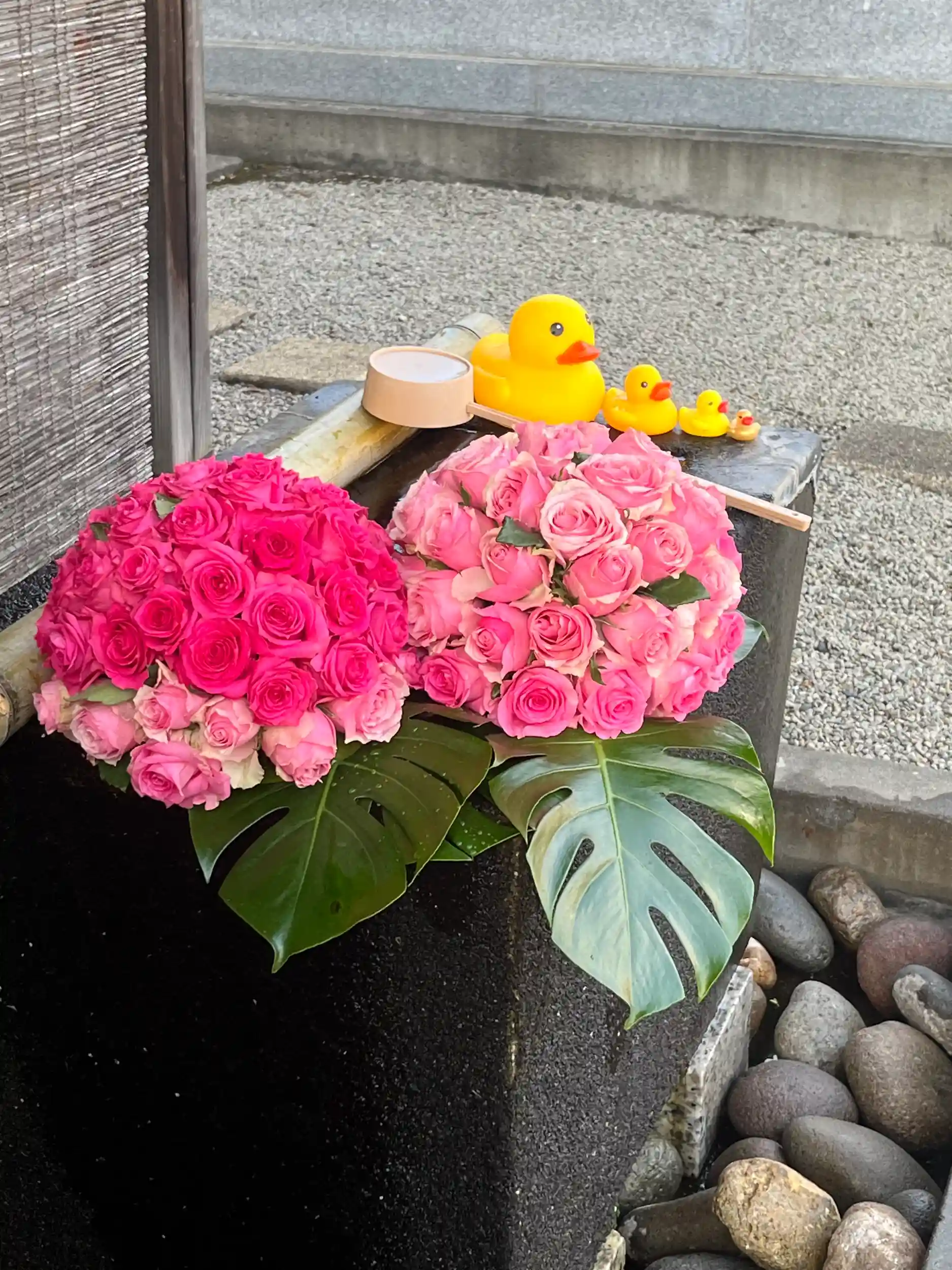 手水舎のお花の飾り付けをいたしました。
