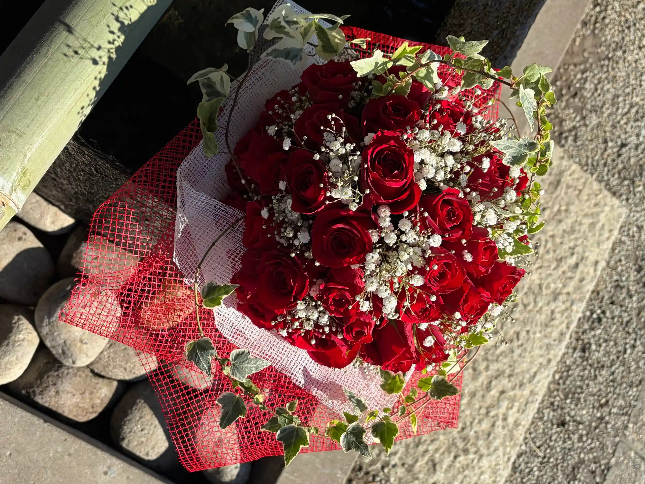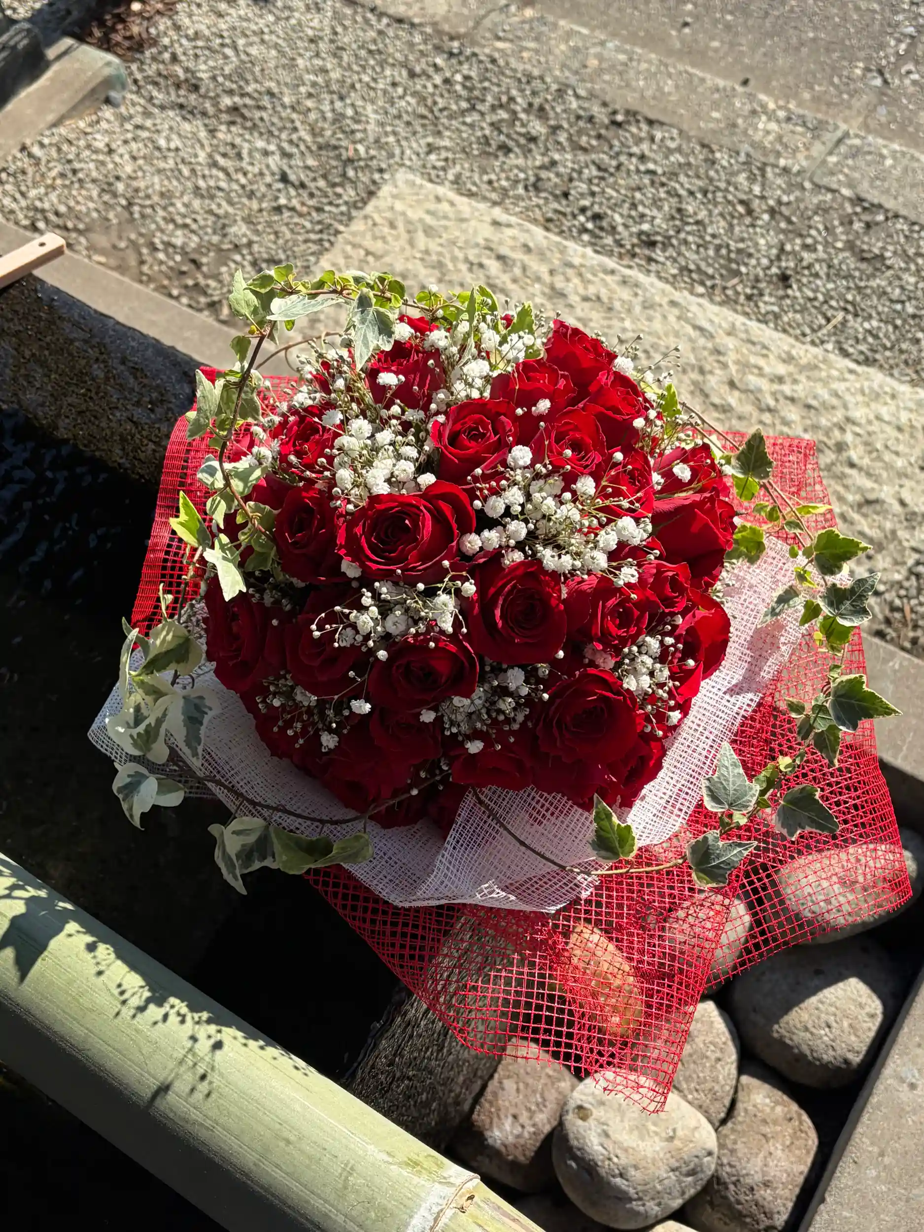 手水舎のお花の飾り付けをいたしました。