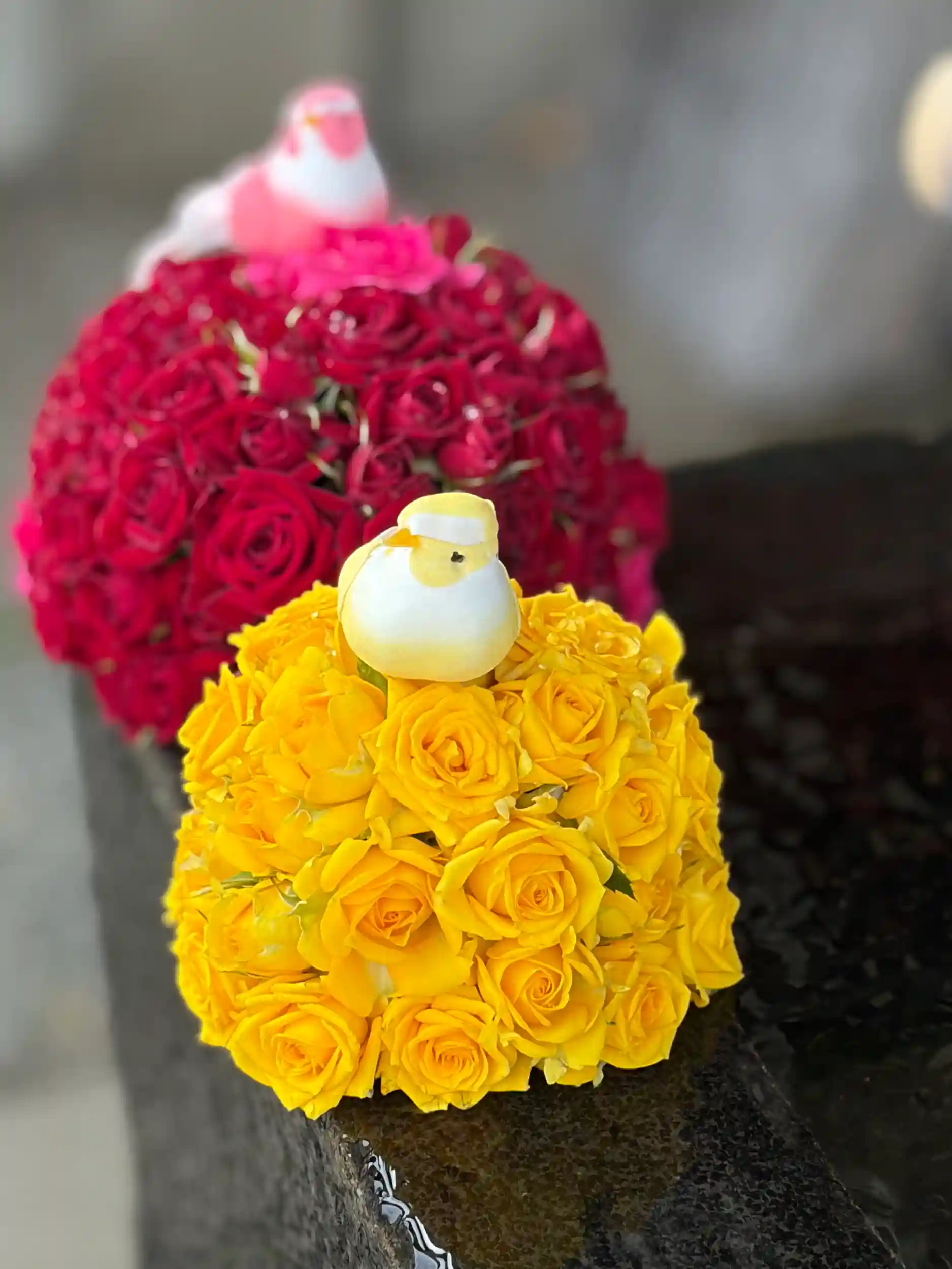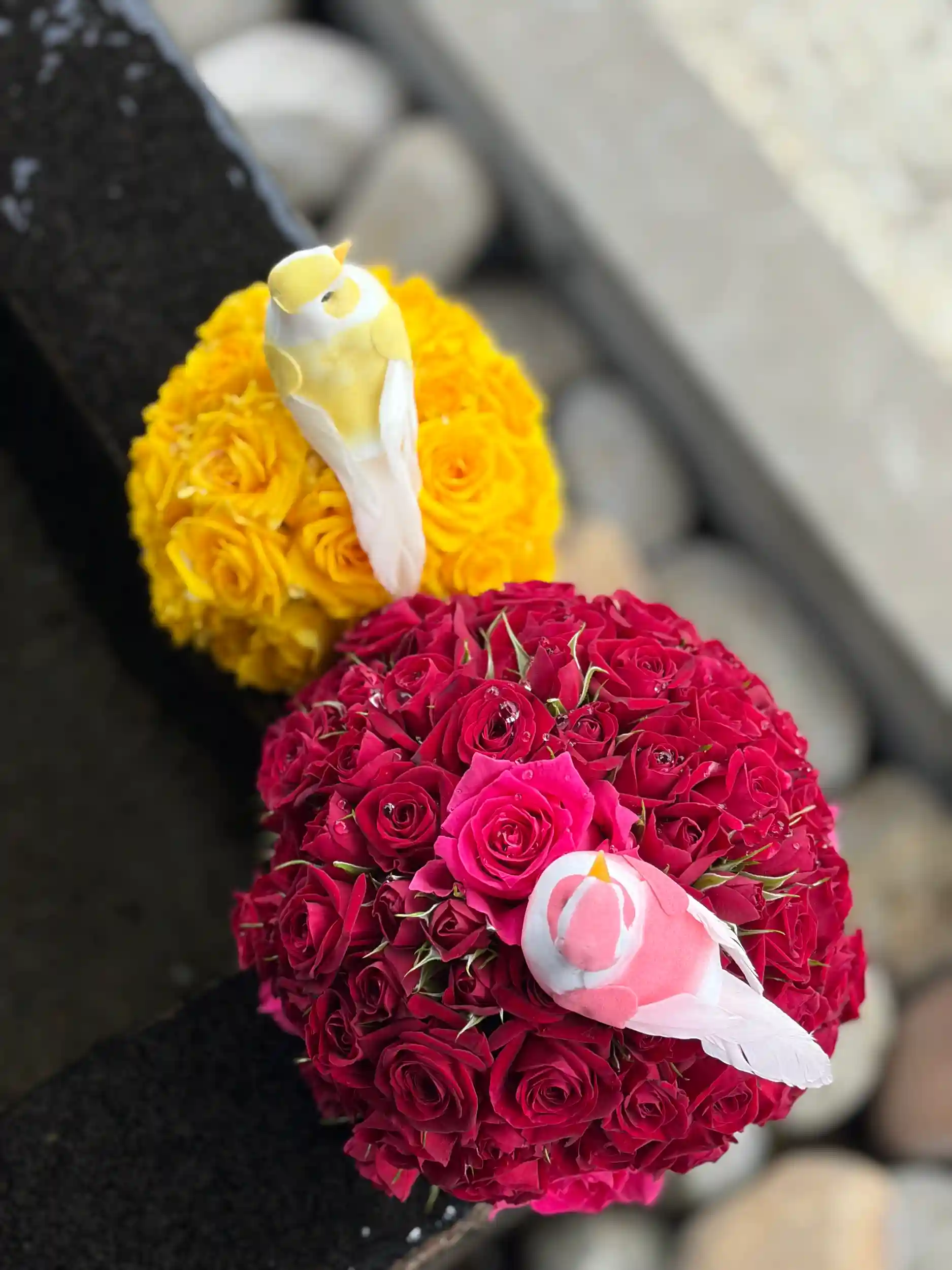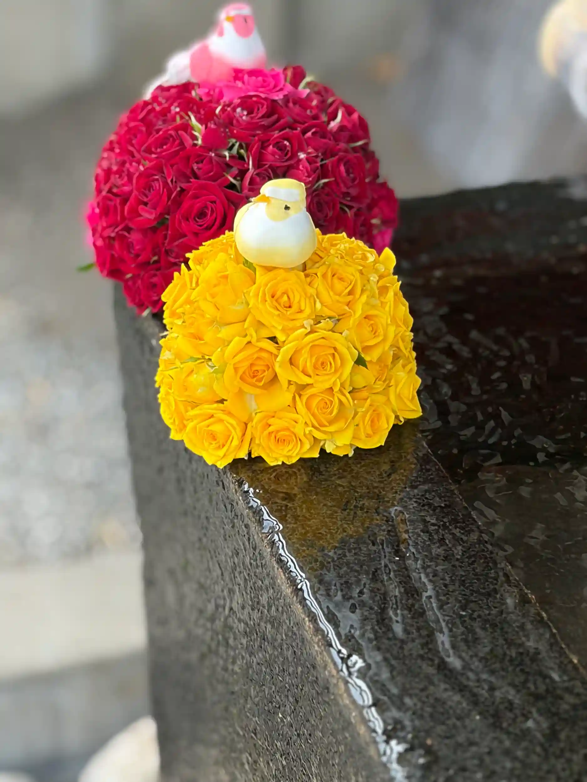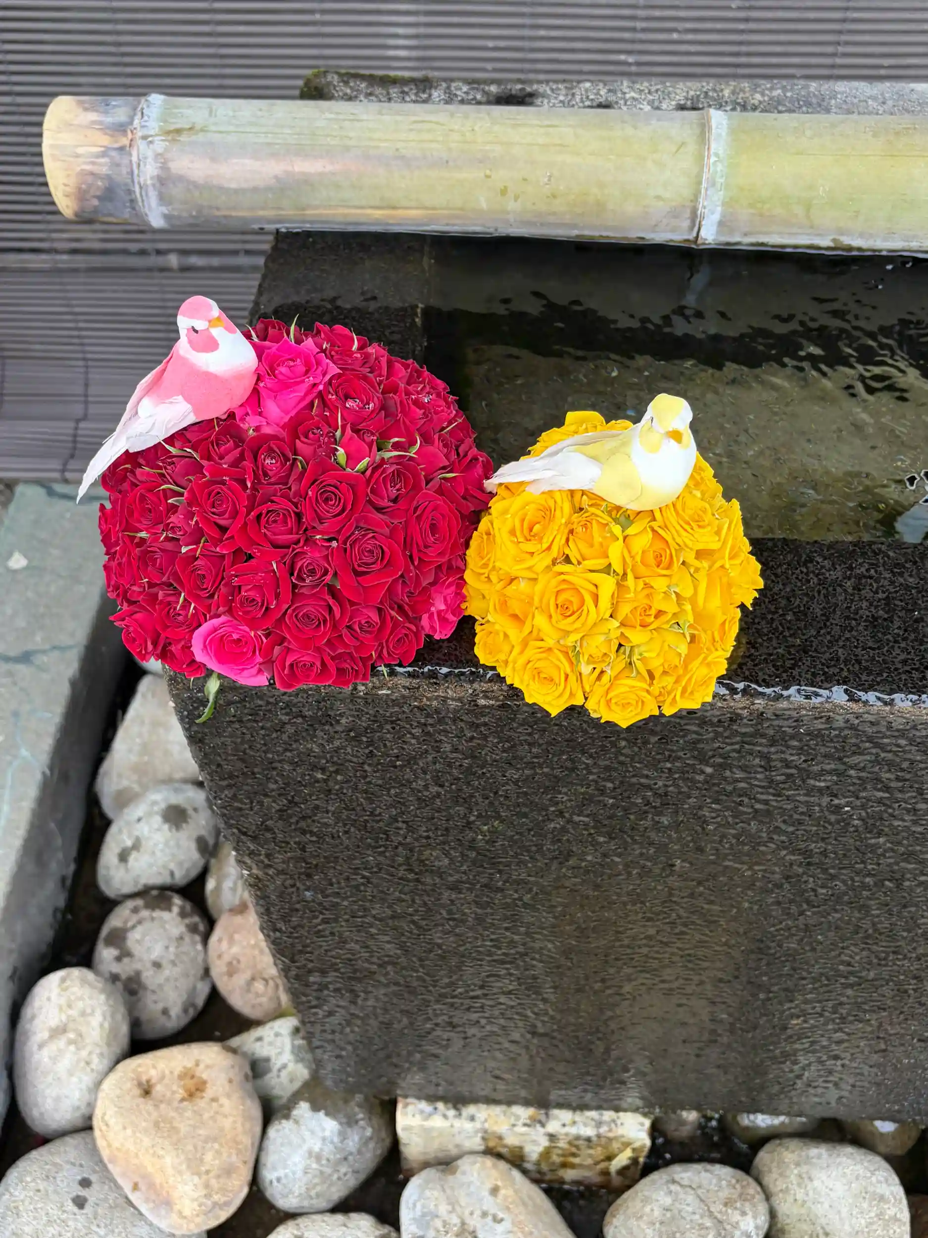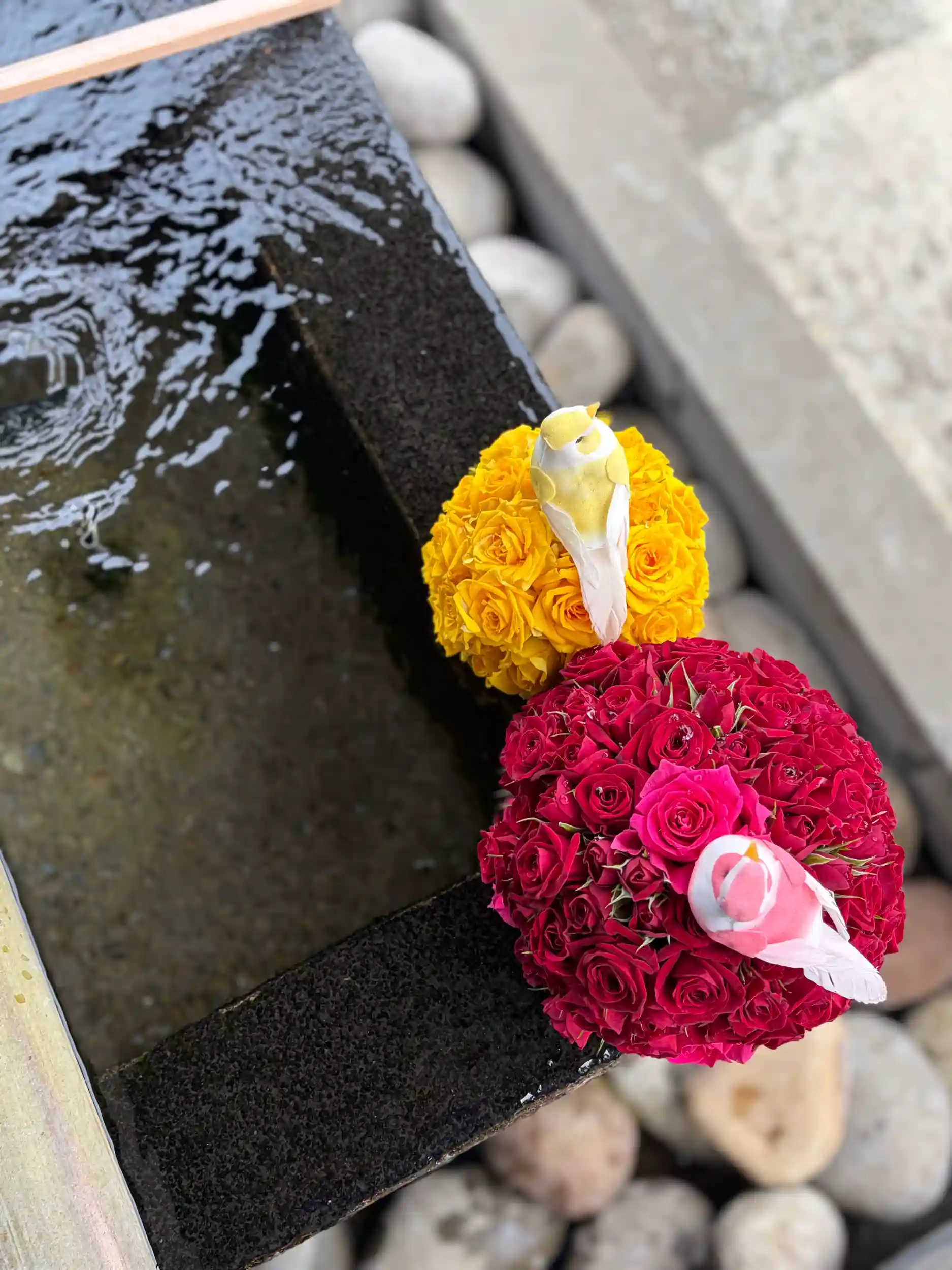 手水舎のお花の飾り付けをいたしました。