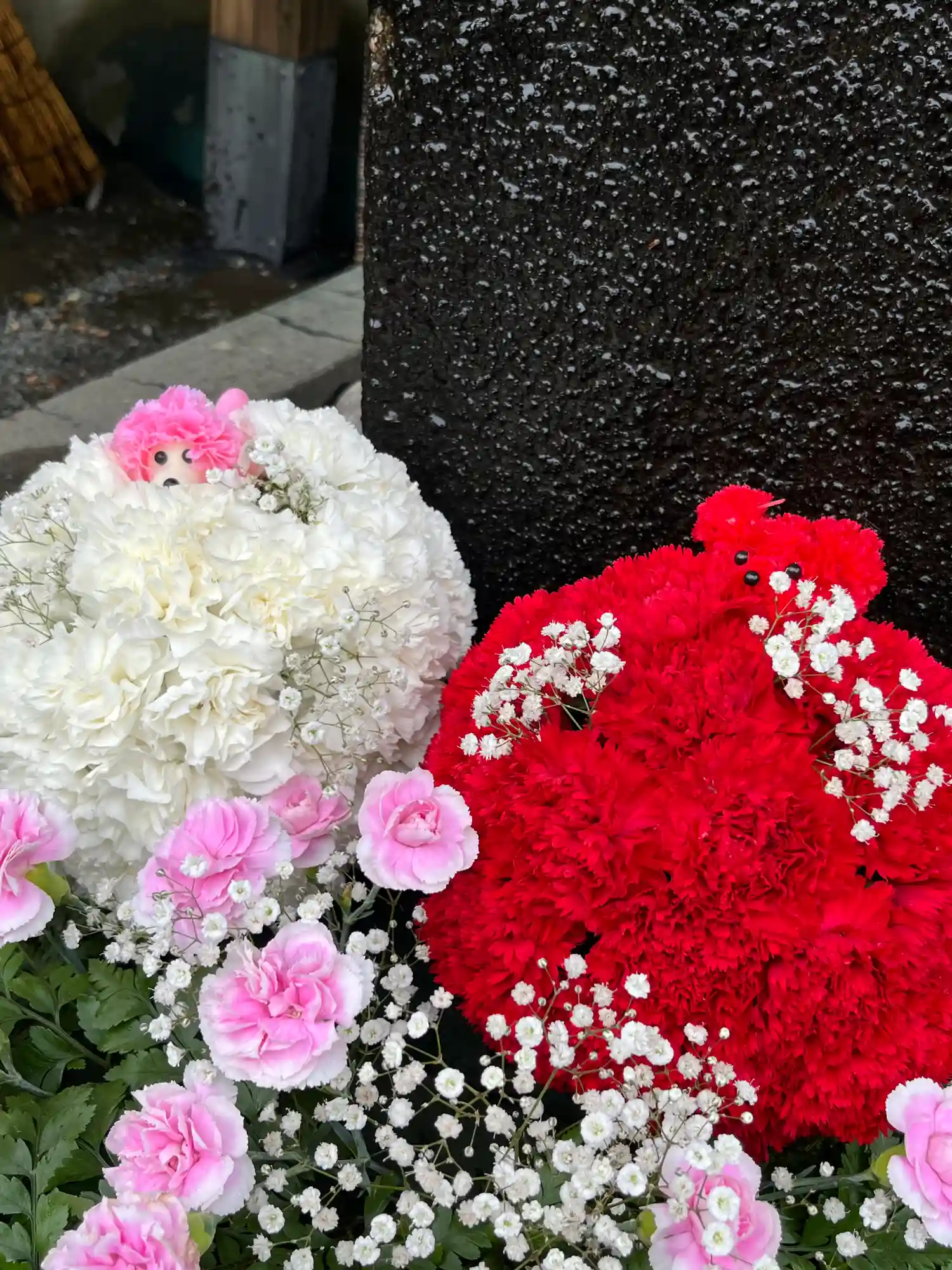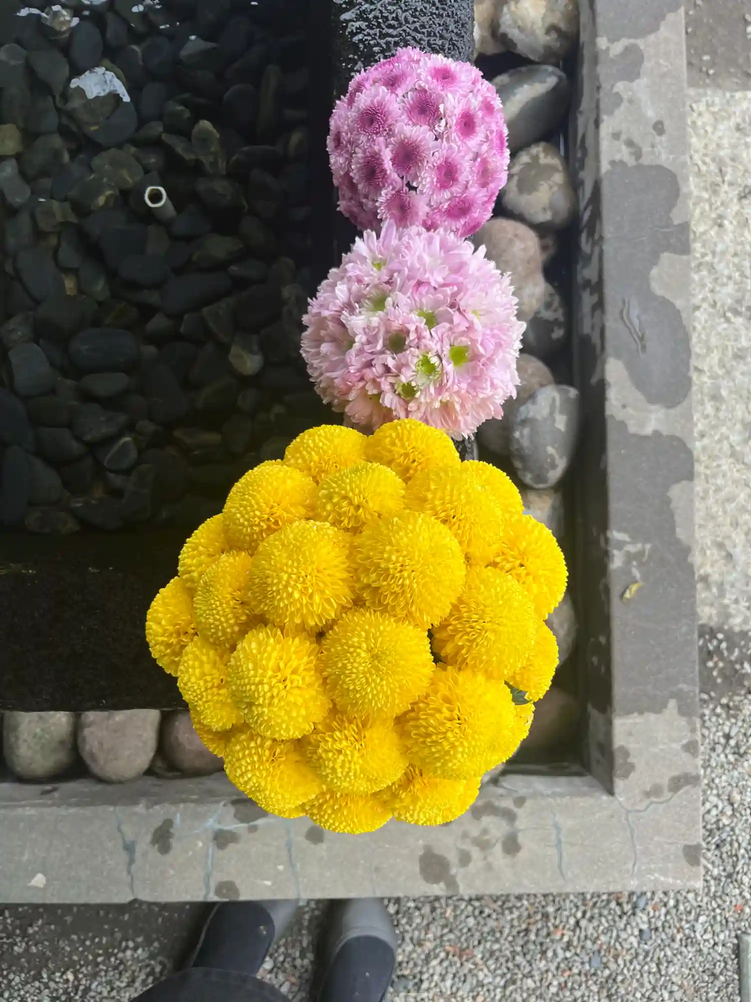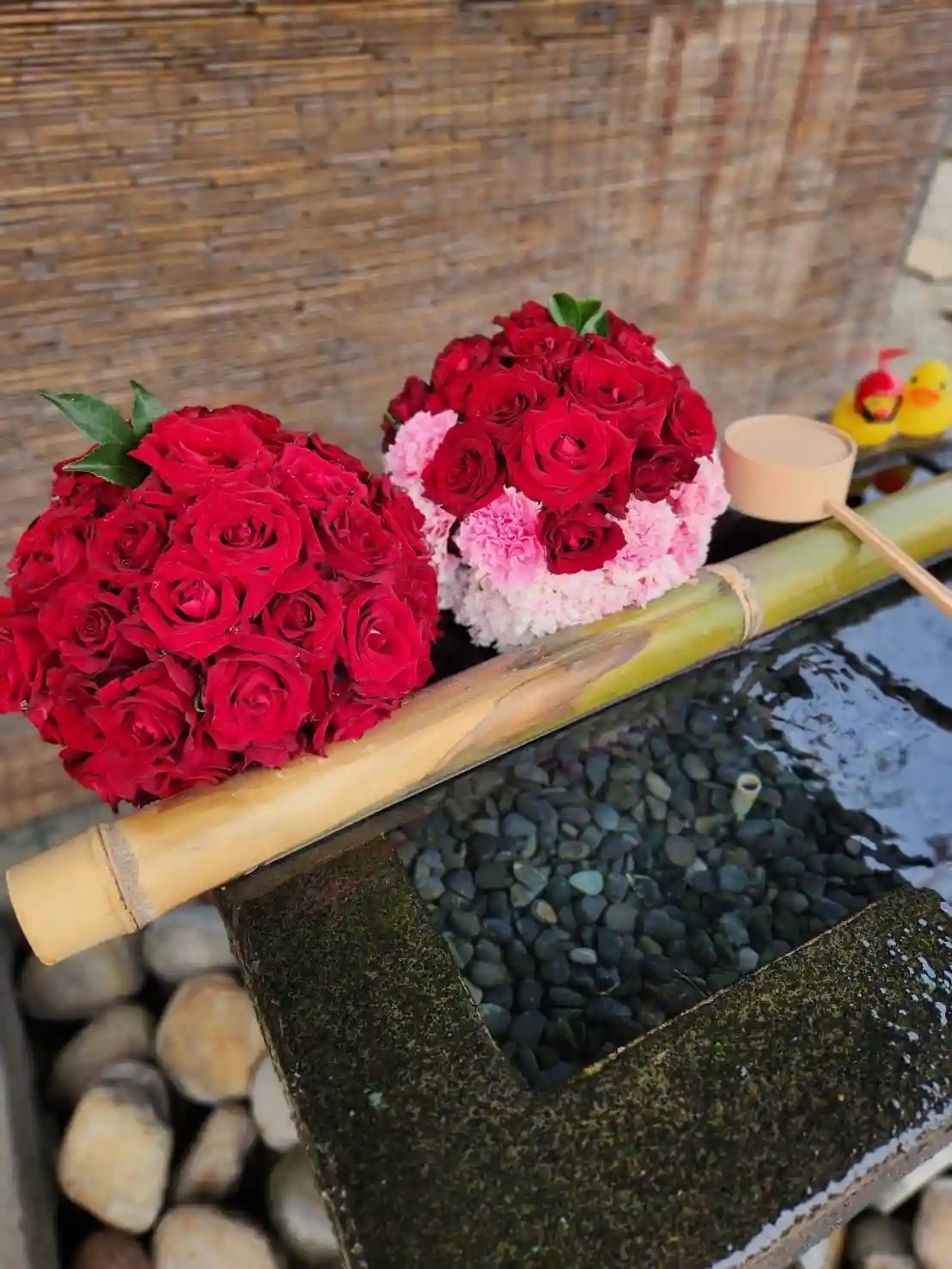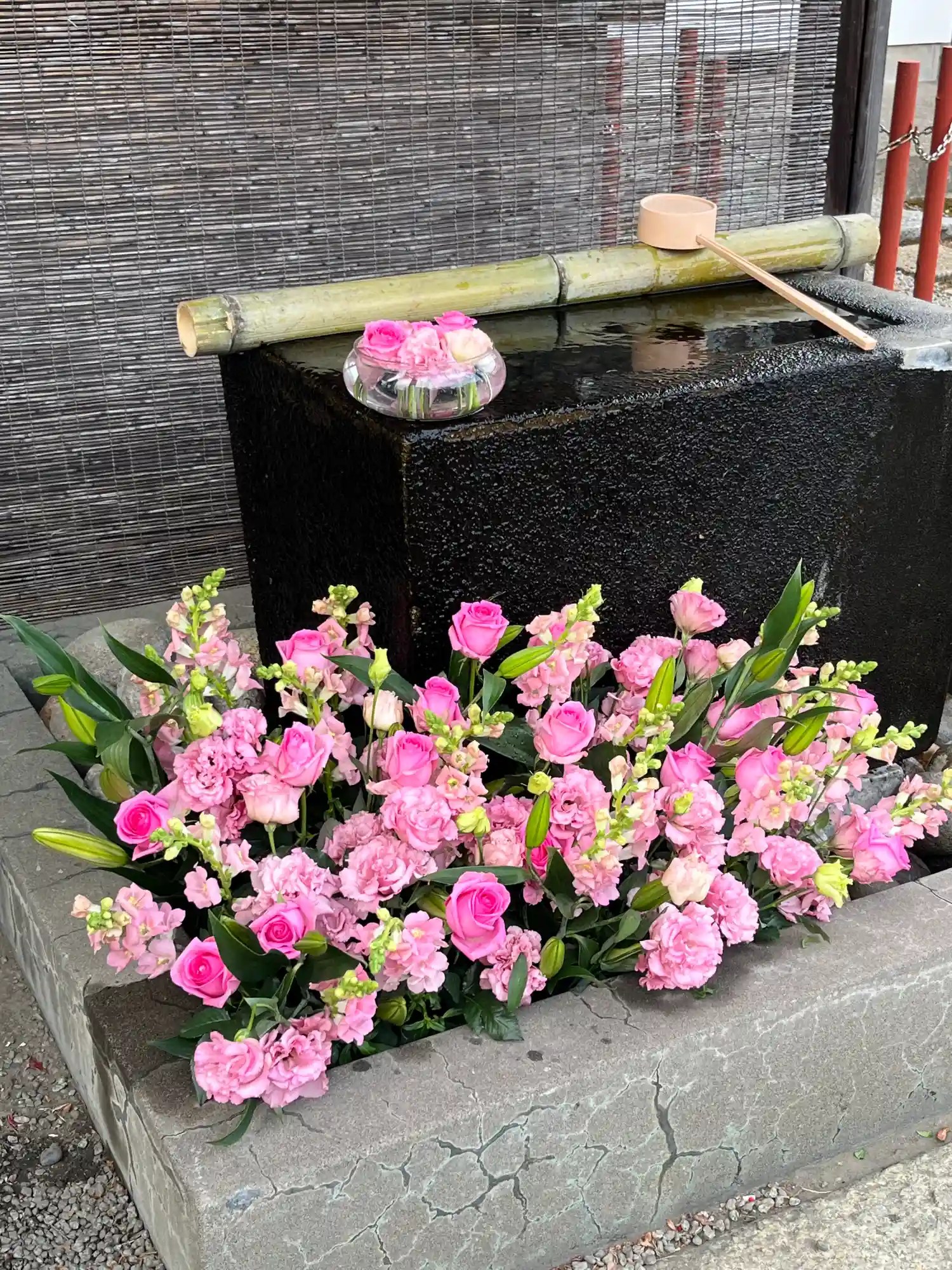 手水舎のお花の飾り付けをいたしました