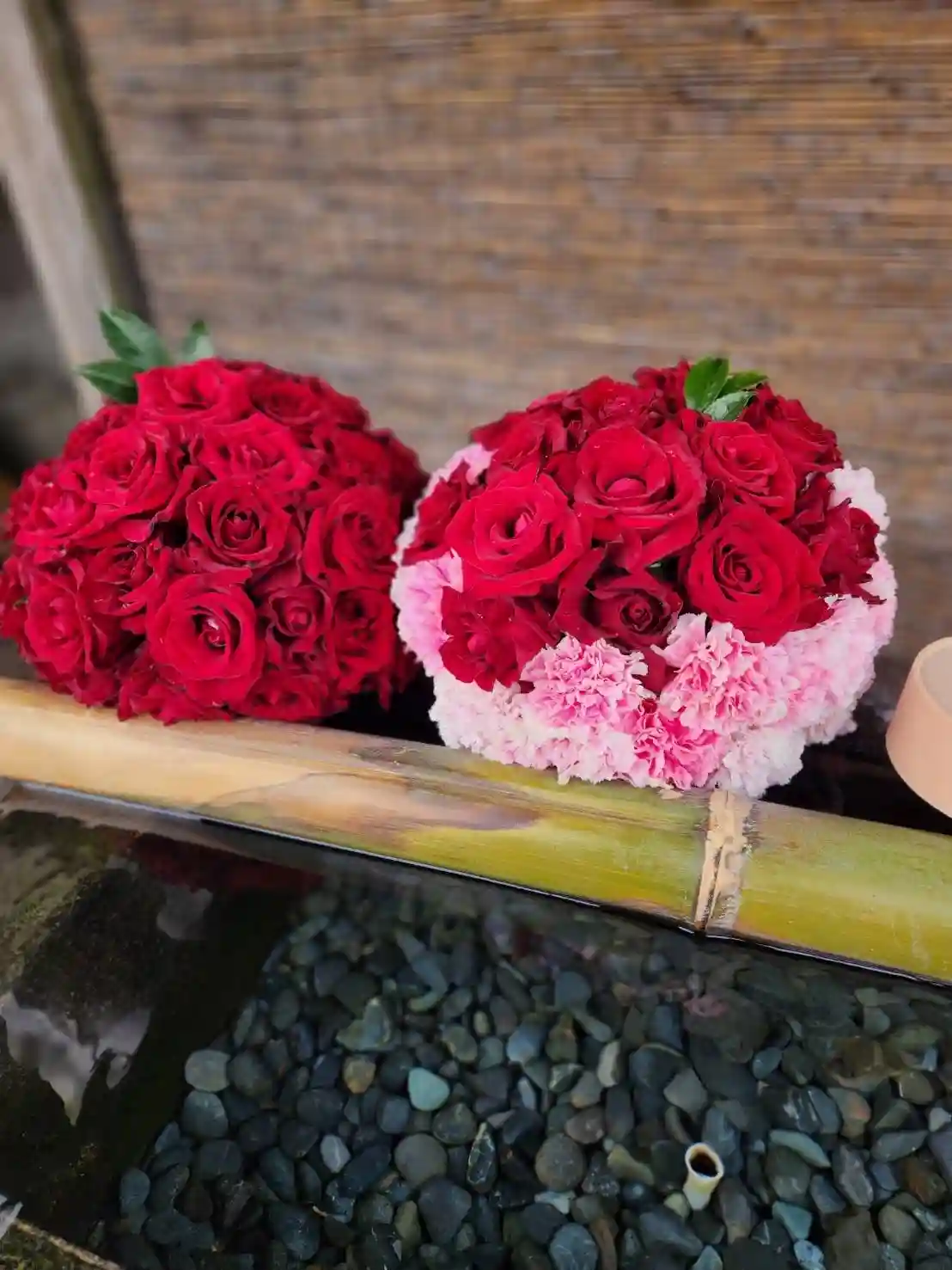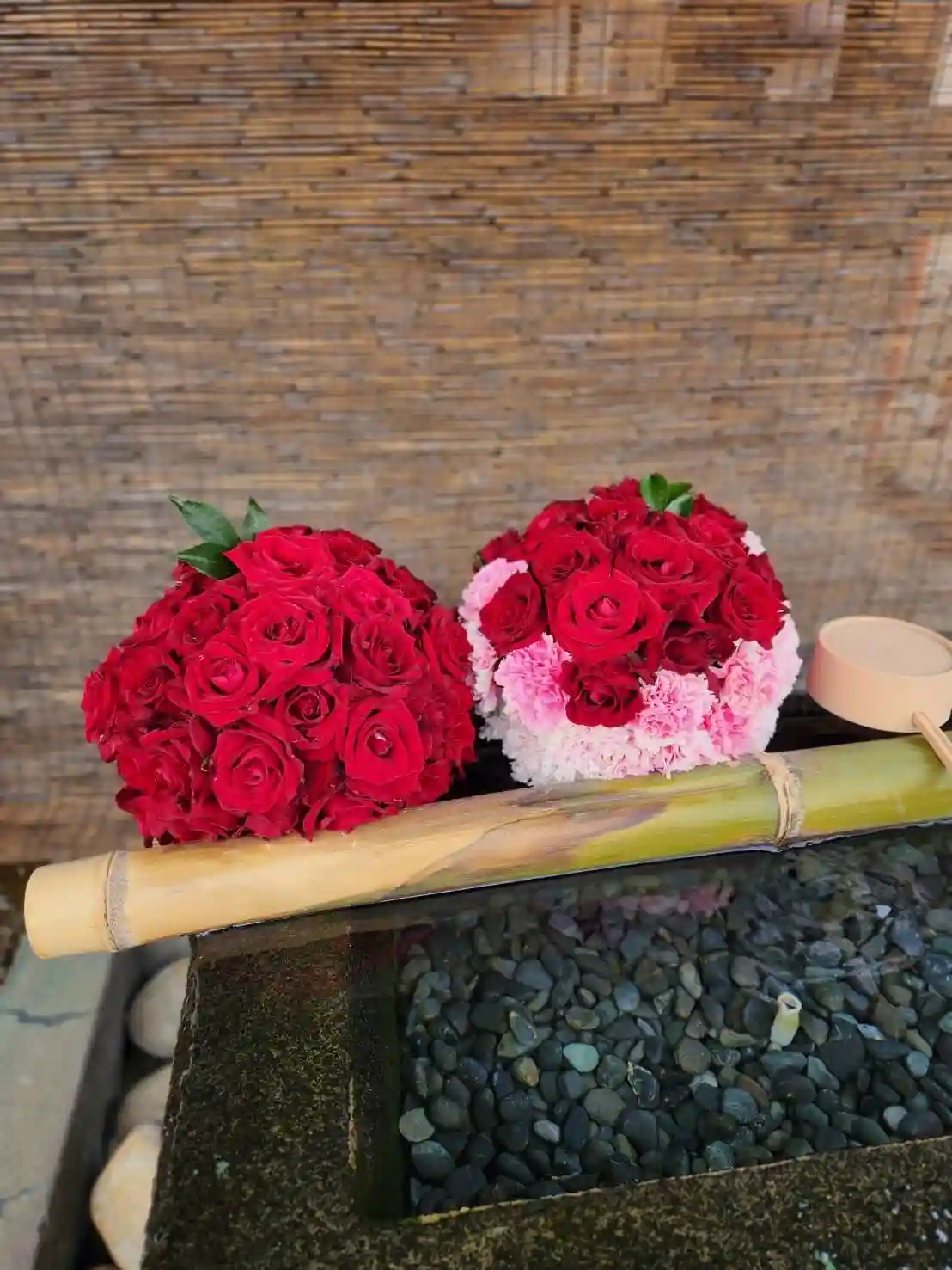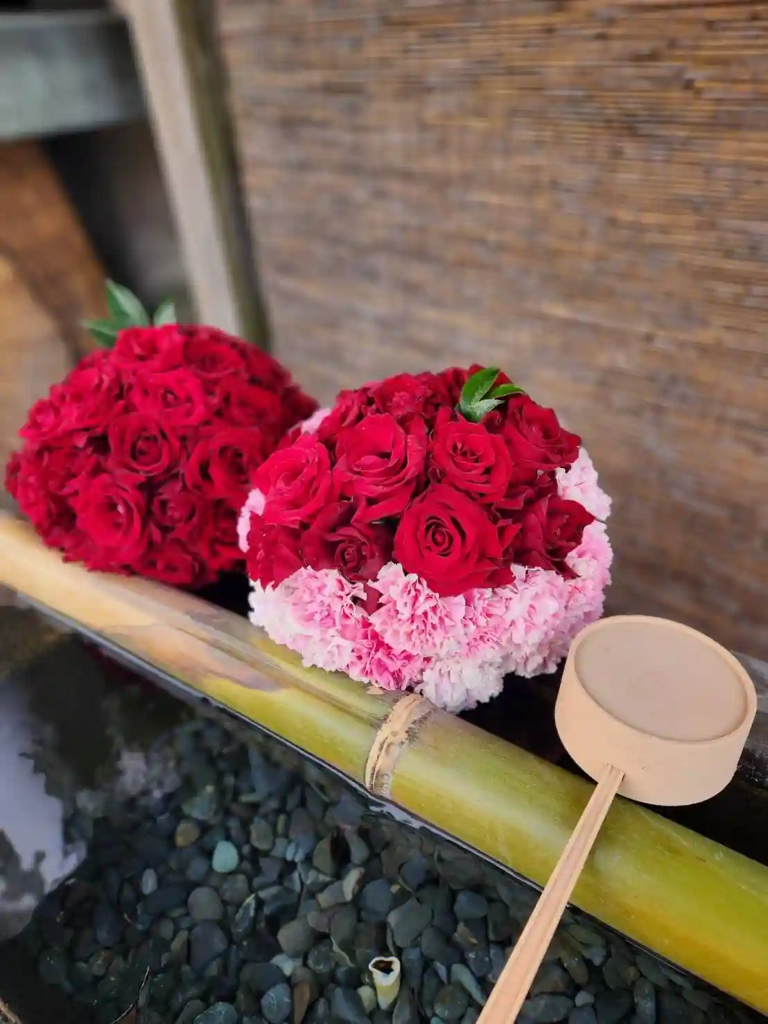 手水舎のお花の飾り付けをいたしました。