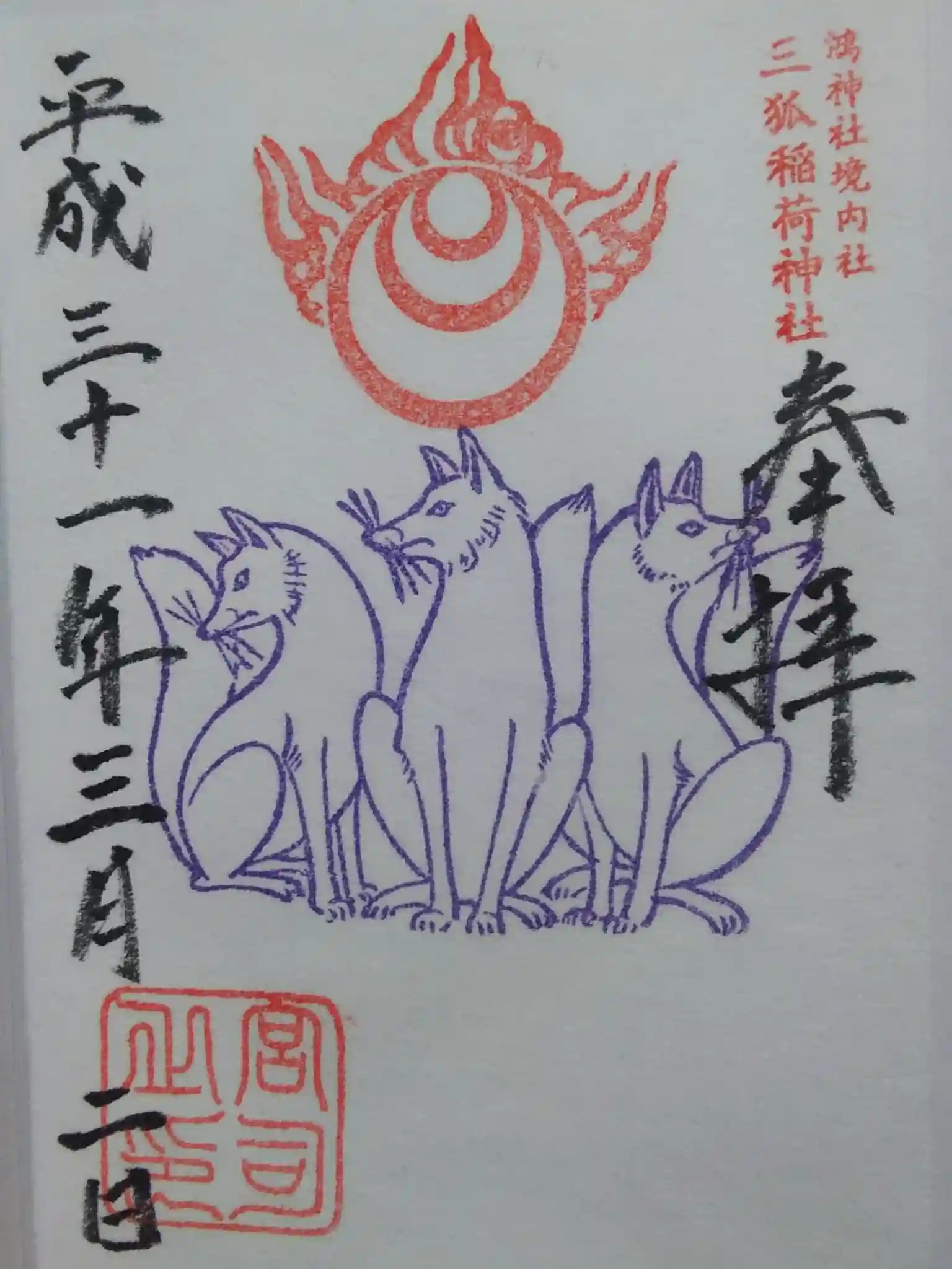 <御朱印>三狐稲荷神社の御朱印