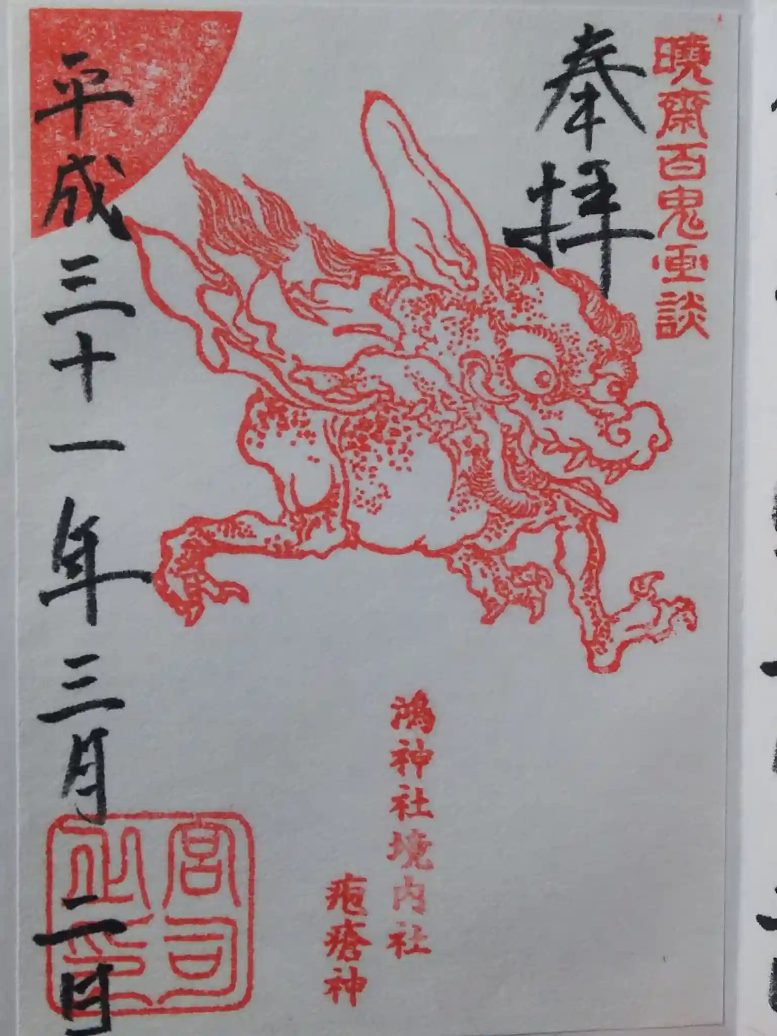 <御朱印>浮世絵師河鍋暁斎(かわなべきょうさい)の「暁斎百鬼画談」に描かれている疱瘡神です。