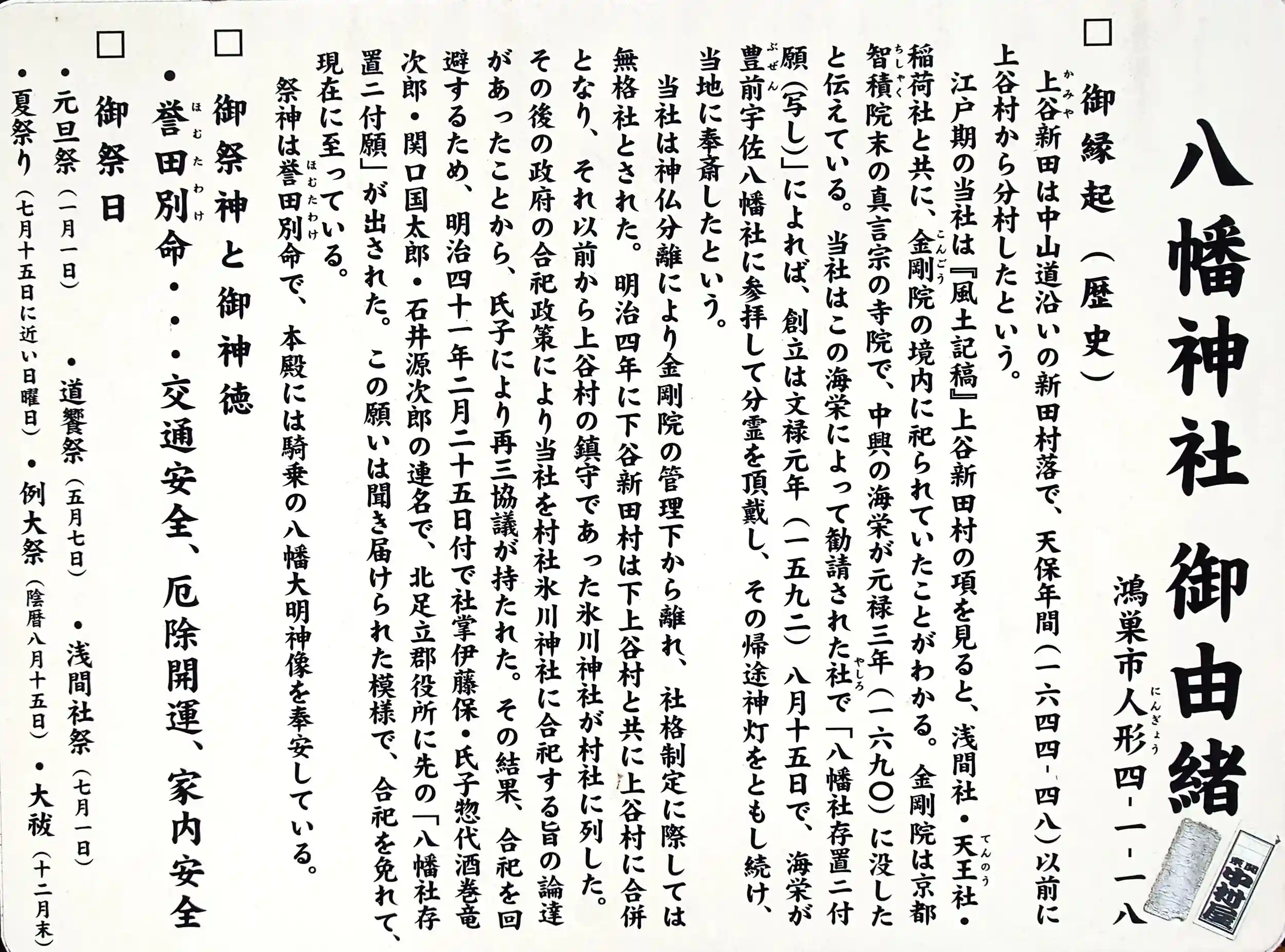 生出塚神社の次に近くの八幡神社を参拝しました。 御朱印は、鴻神社で対応します。