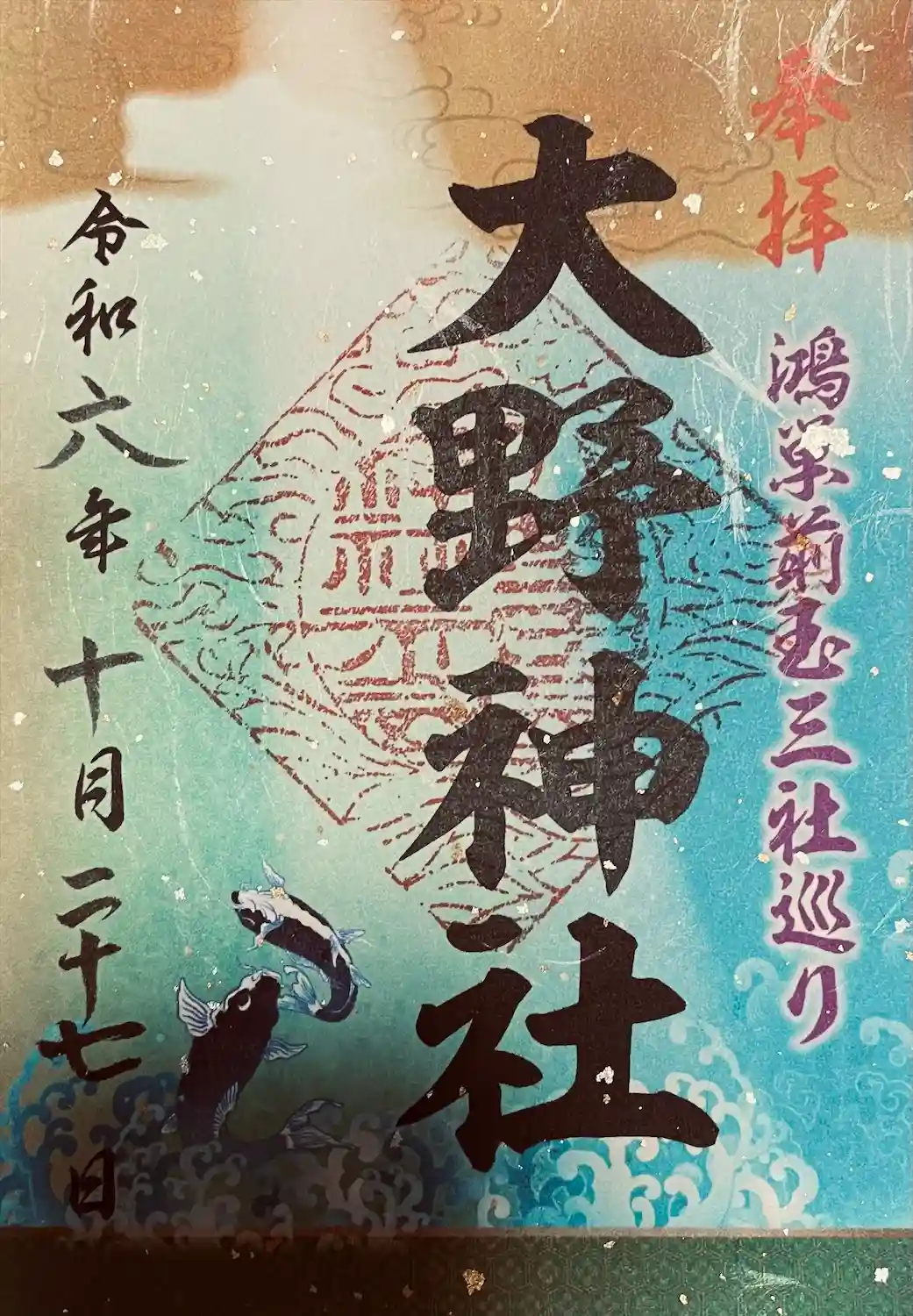鴻神社の次に近くの大野神社を参拝して御朱印の対応をして頂きました。