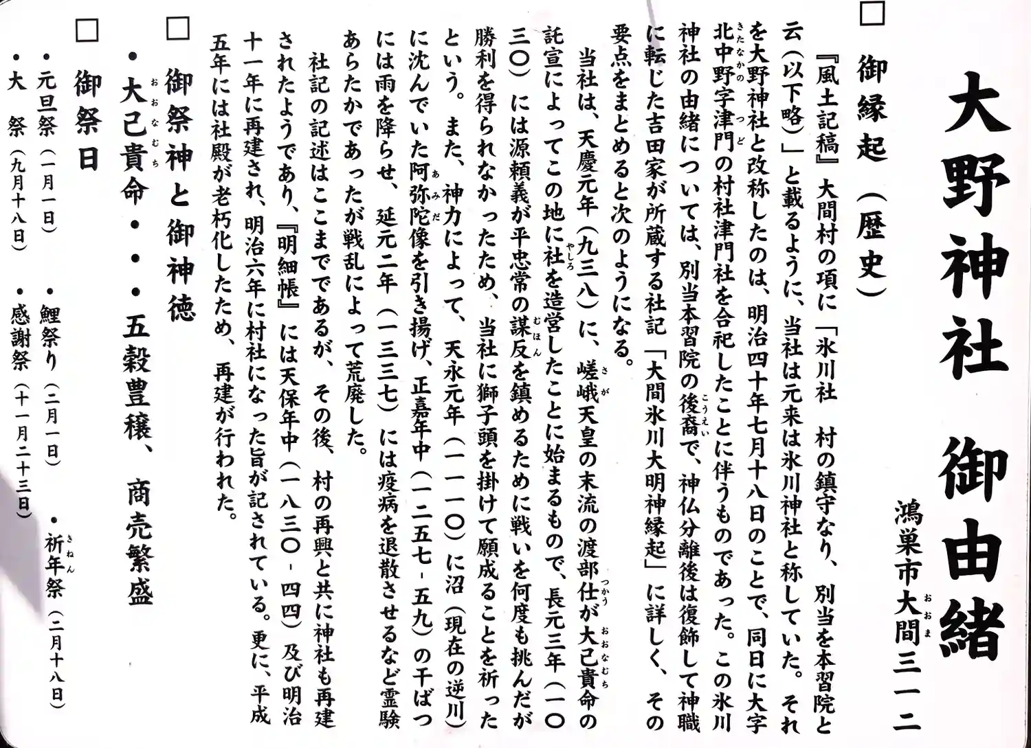 大野神社の御由緒