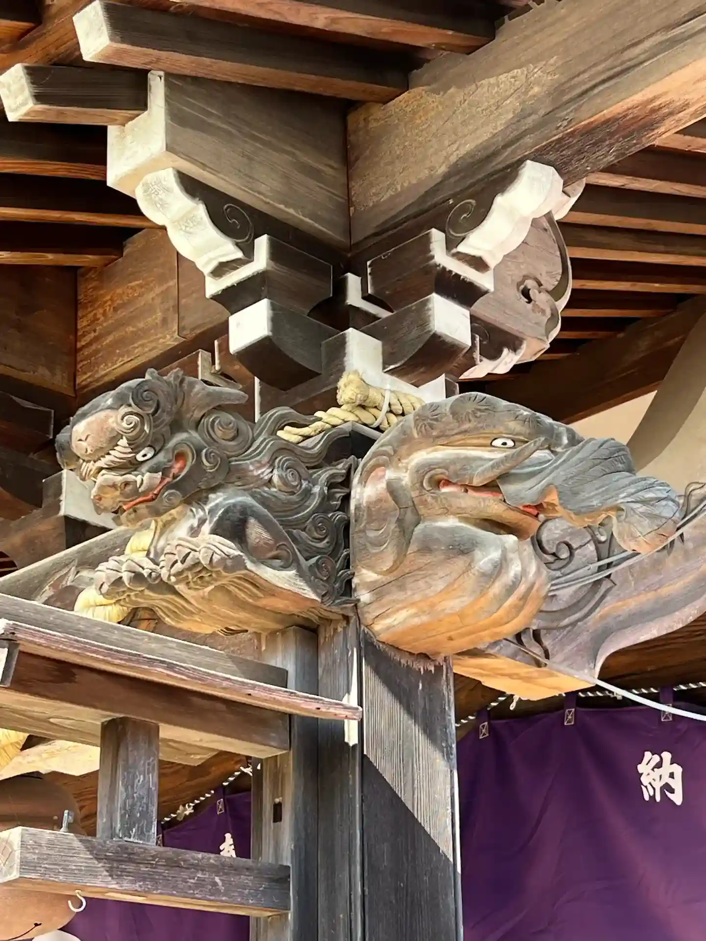 柱に獅子?とバク❓
