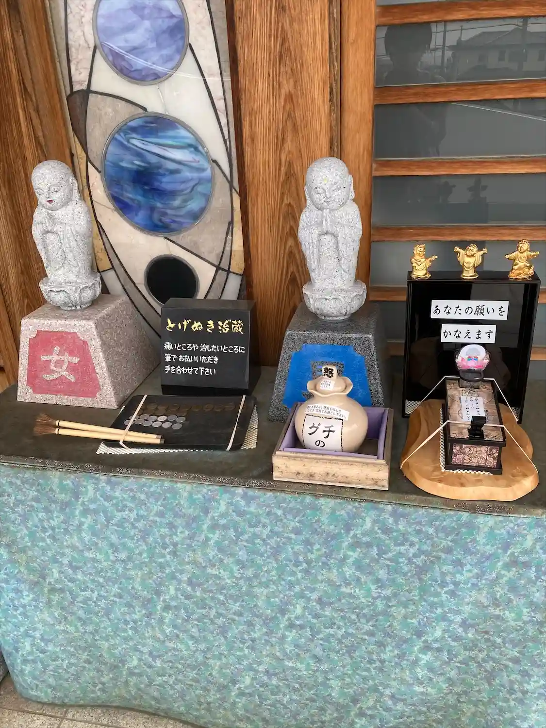 かわいいお猿さんのぬいぐるみや、いろんな像、愚痴のツボとかいろいろあります