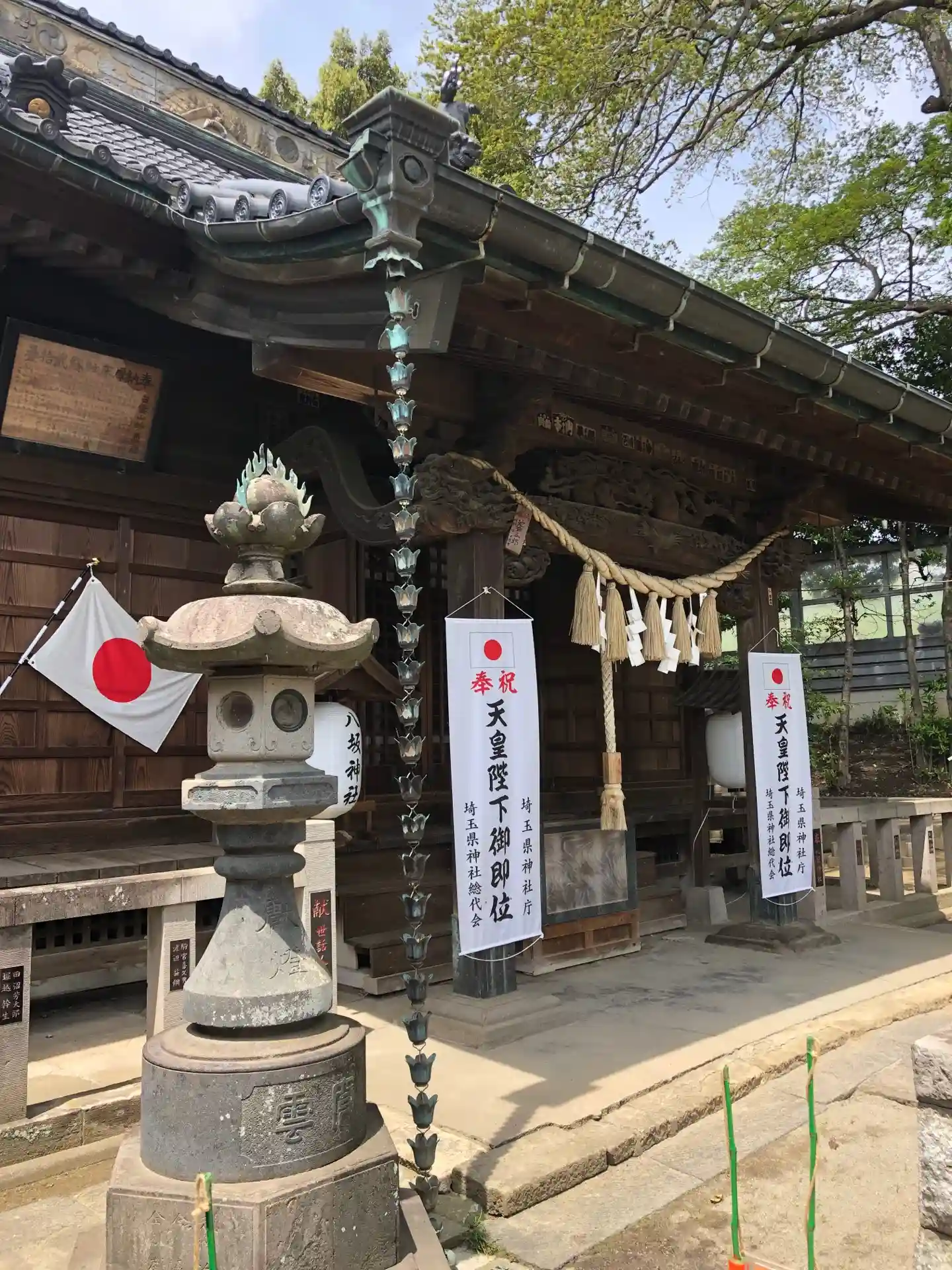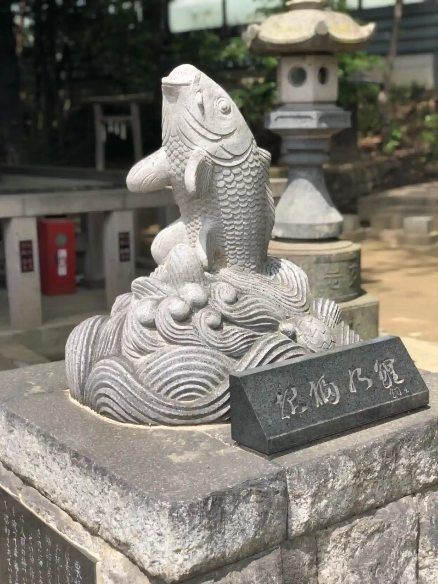 茨城から見ると埼玉県に入ってすぐの神社です。近く移転するのかな?鯉の石像は珍しいですね。