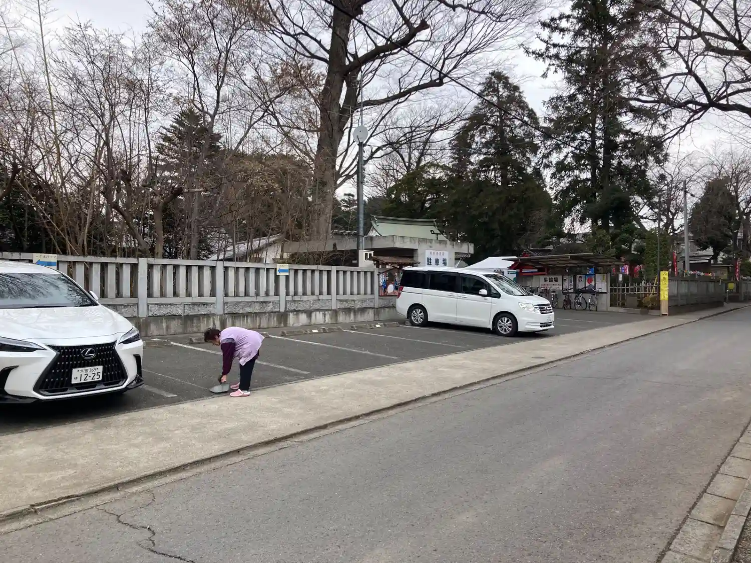 神社の前の道路に駐車場はありますが、一方通行なの…