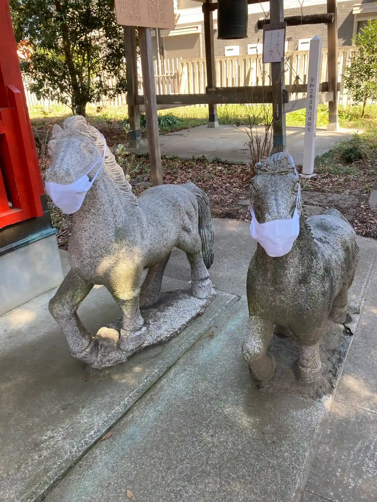 狛犬もマスクです