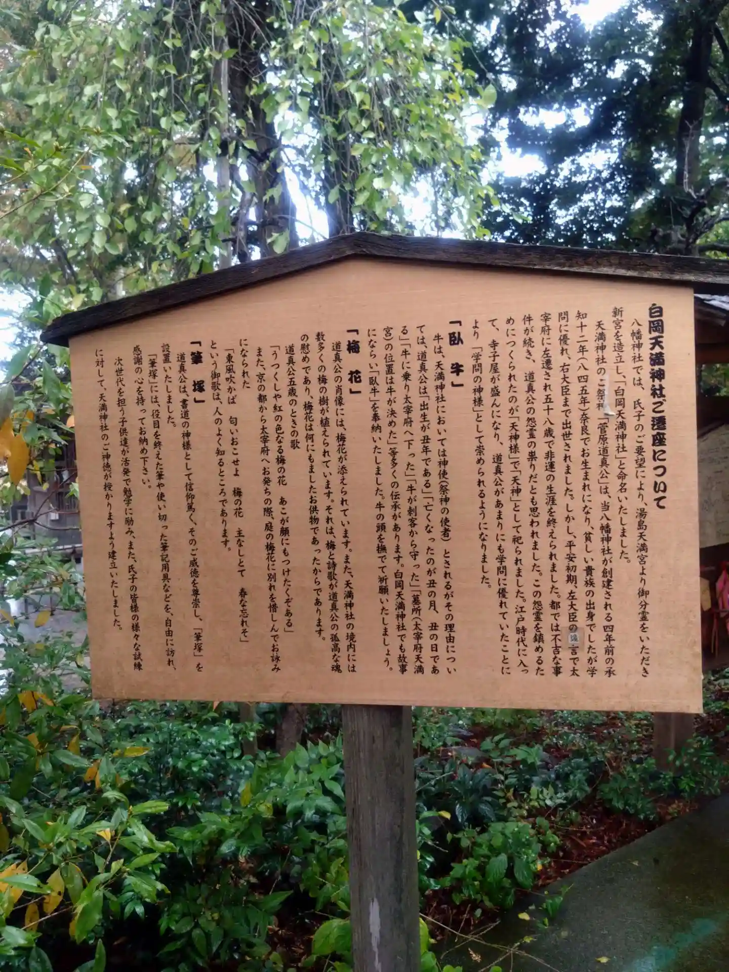 学問の神様も祀り、筆塚ではお世話になった…