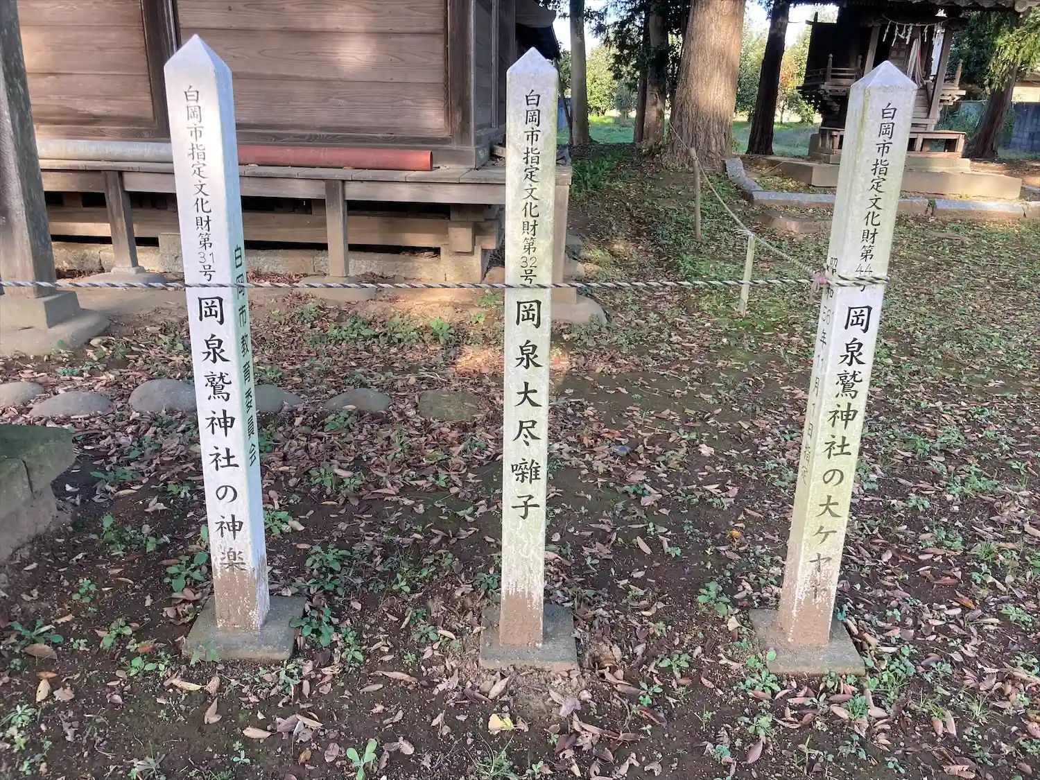 岡泉鷲神社は、天和元年(1681)に当地へ勧請されたと伝えられている。祭神には天穂日命が祀られている。