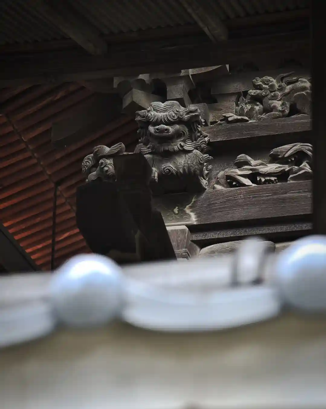 彫刻の場所、なかなかわからなくて、社務所の方にお伺いしたところ、お清めをしないと中…
