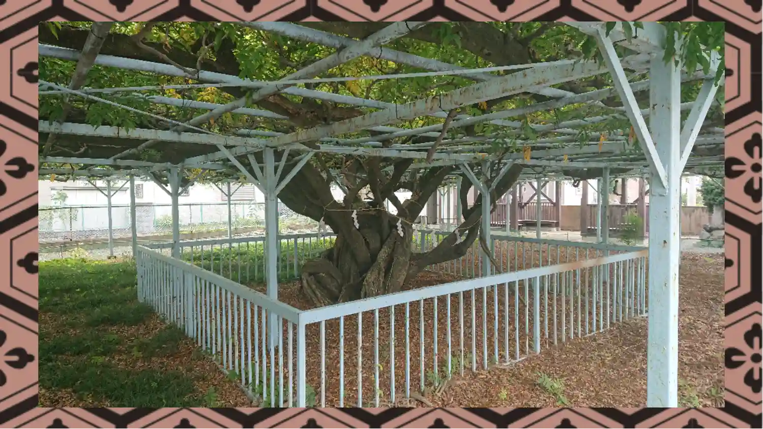 御神木の藤の木は伸びやかに枝を広げていました