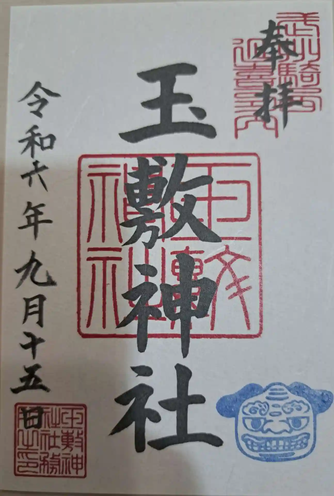 玉敷神社の御朱印です。