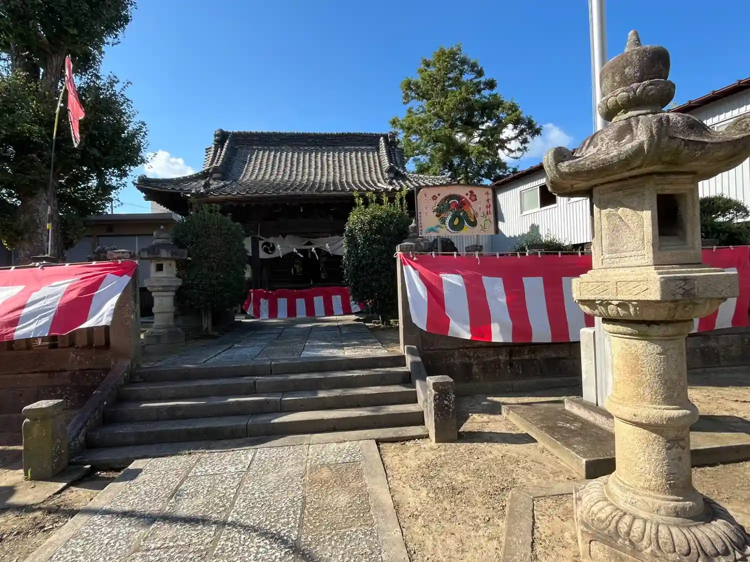 千方神社(ちかた)さんへお参りをいたしました。拝殿前に着いたところ、丁度お宮参り?のご祈祷の最中だ…