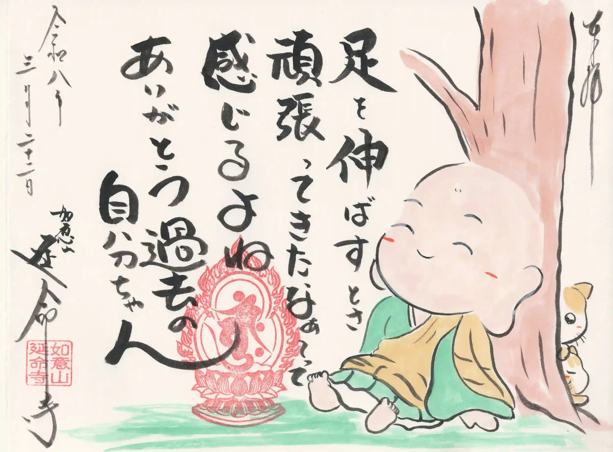 私は月替わりでしたが、ご住職が気の後ろに"こそっ"と猫ちゃんを書いてくださいました😊