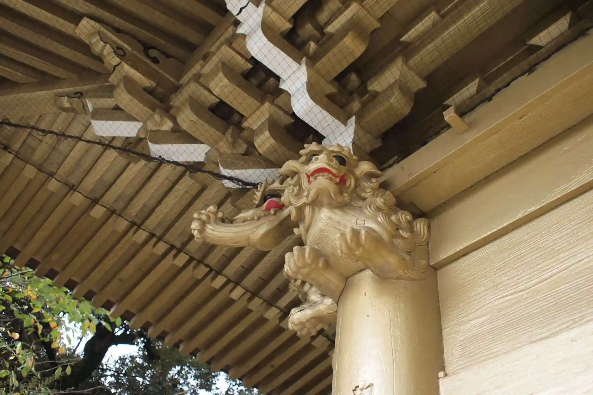 灯篭を獅子が支えています。
