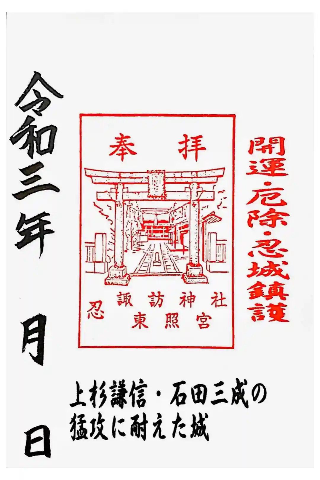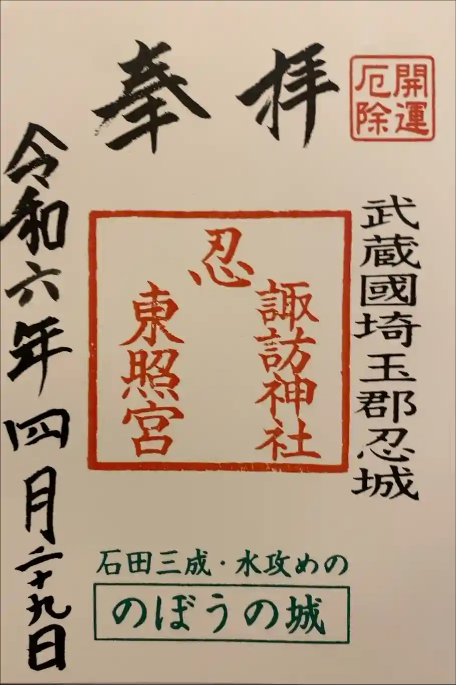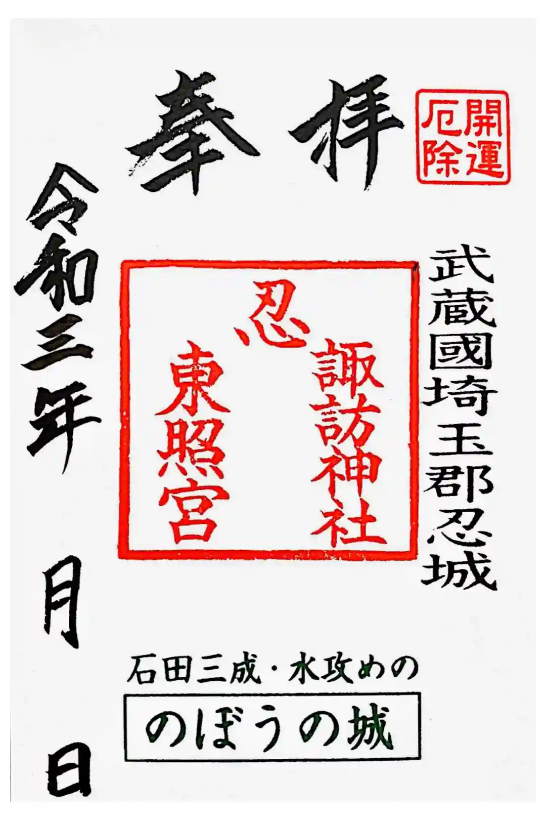 忍 諏訪神社・東照宮 の御朱印・御朱印帳