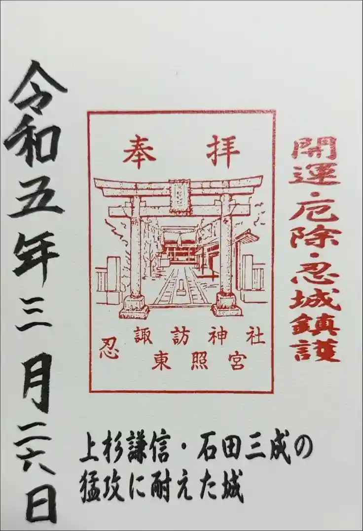 忍 諏訪神社・東照宮 周辺の御朱印