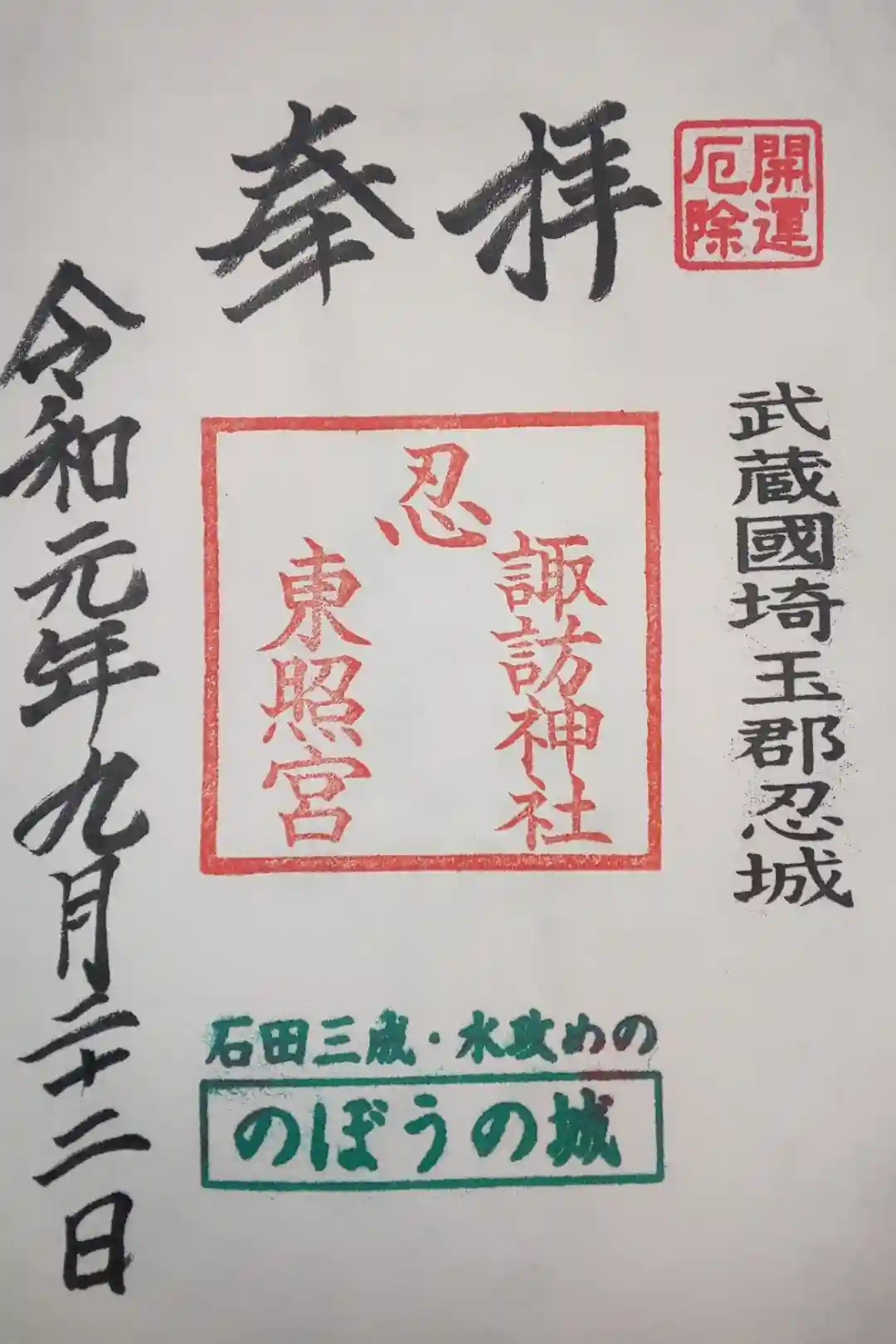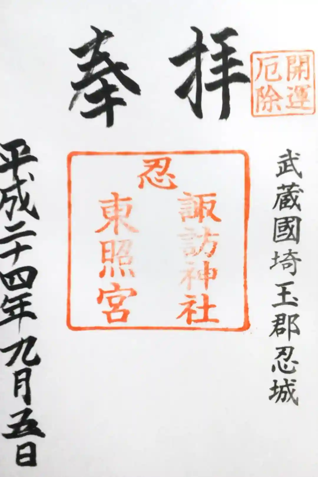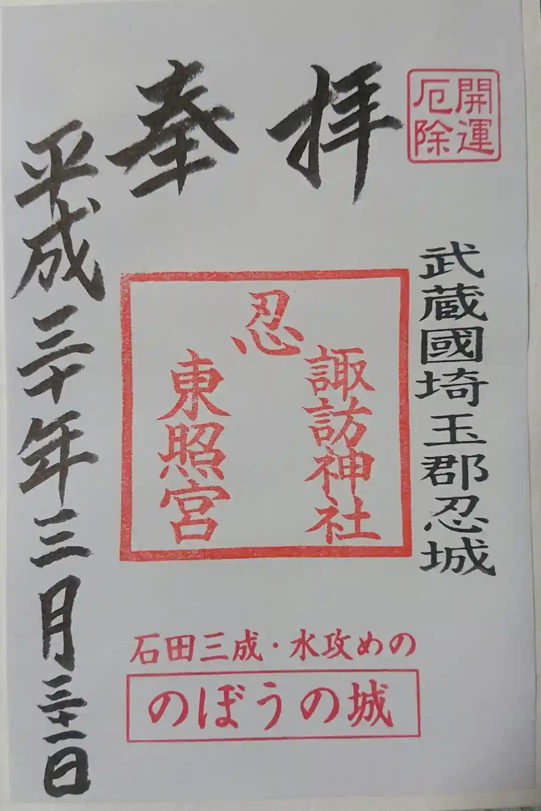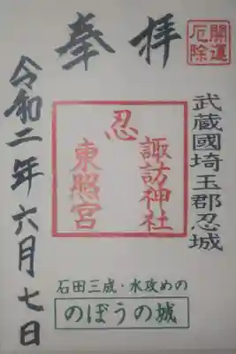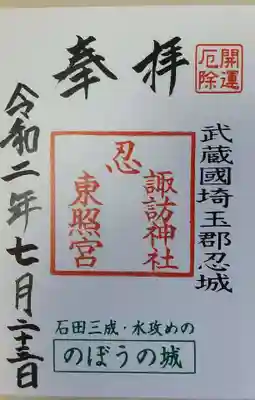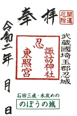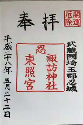 忍 諏訪神社・東照宮 の御朱印 写真一覧