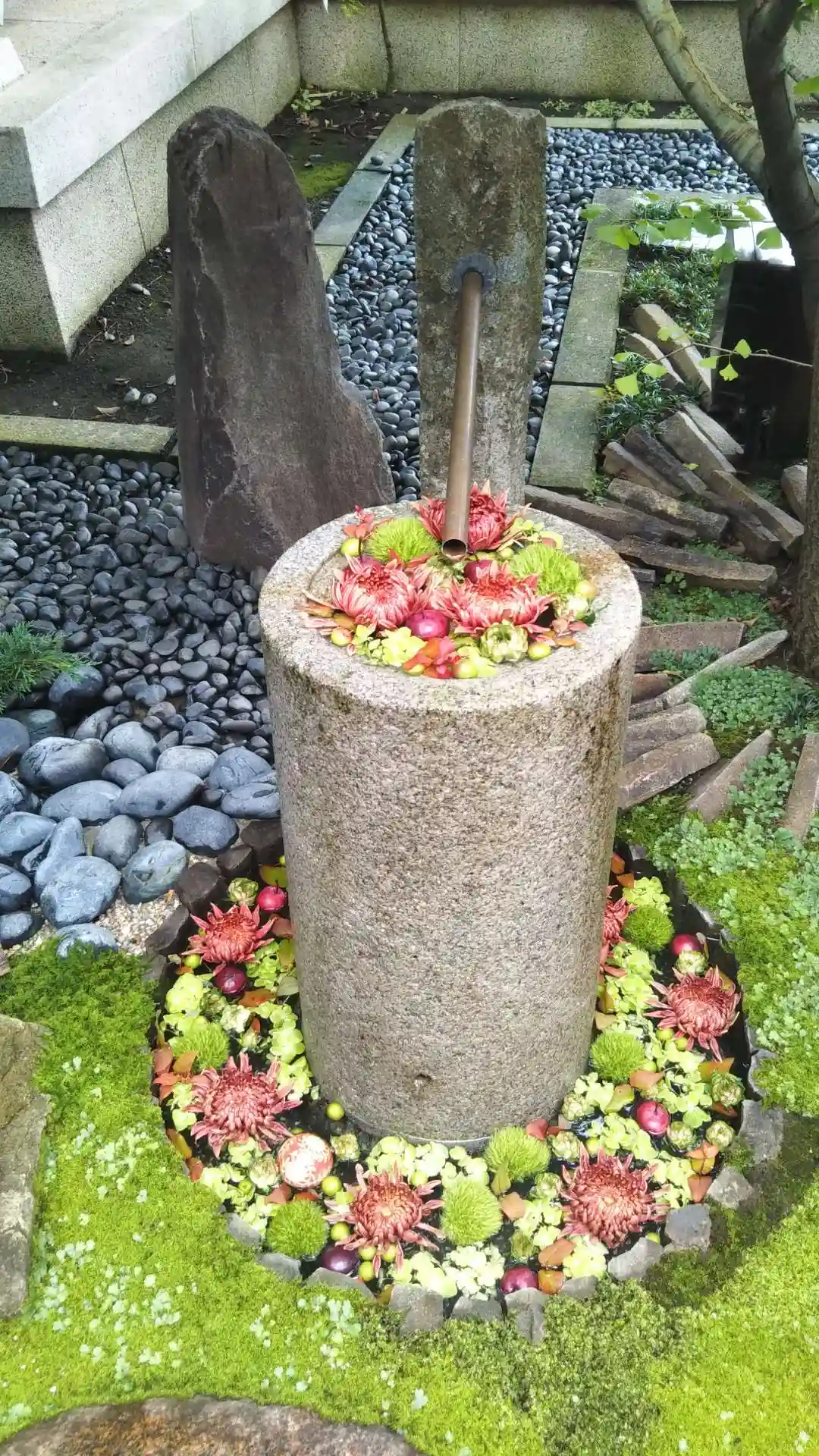 この花手水のお花、造花なんですよー。まぁ、、そうは中々生け花とはいきませんし手間やら考えると造花が一番かな、と