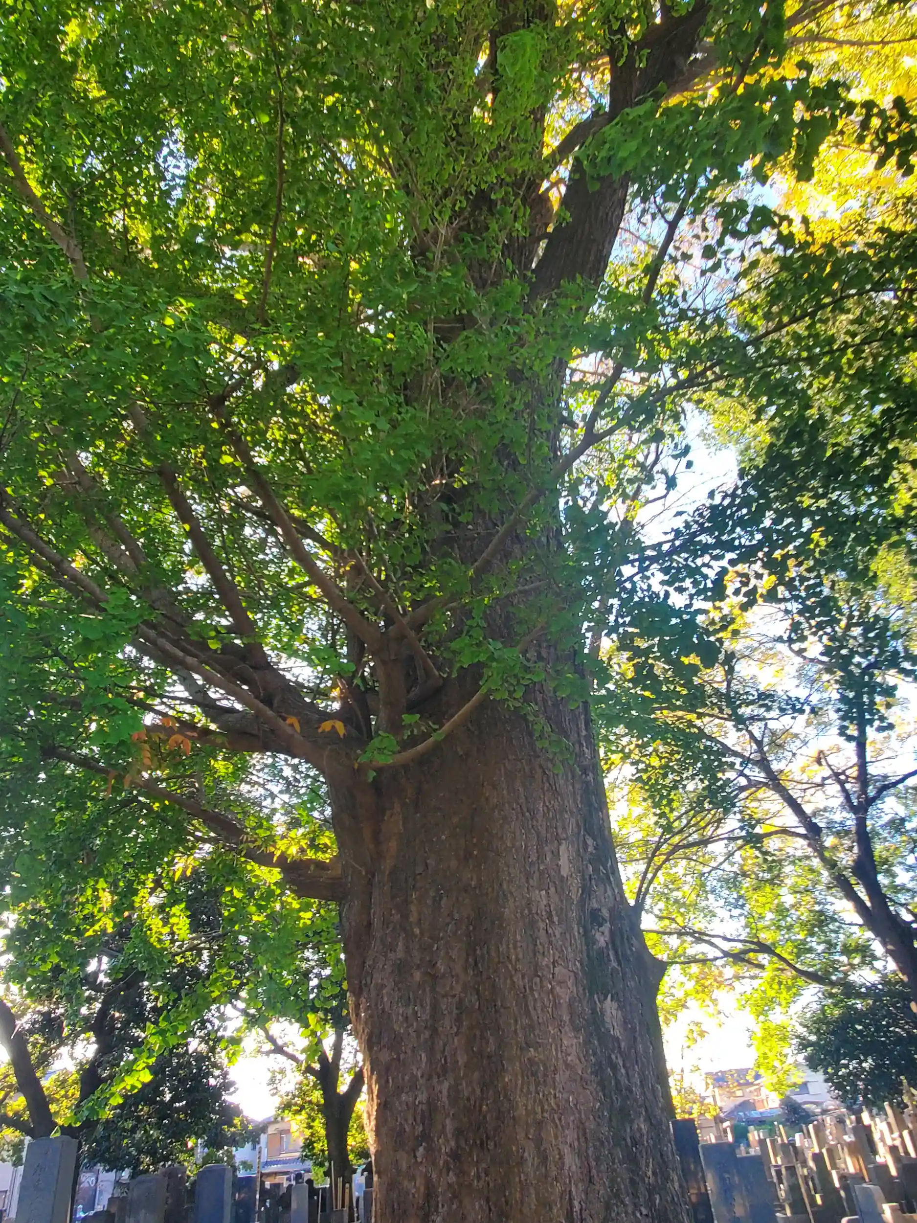 イチョウに似てるけど、秋なのに葉っぱが青々としてるので違う木なのか?