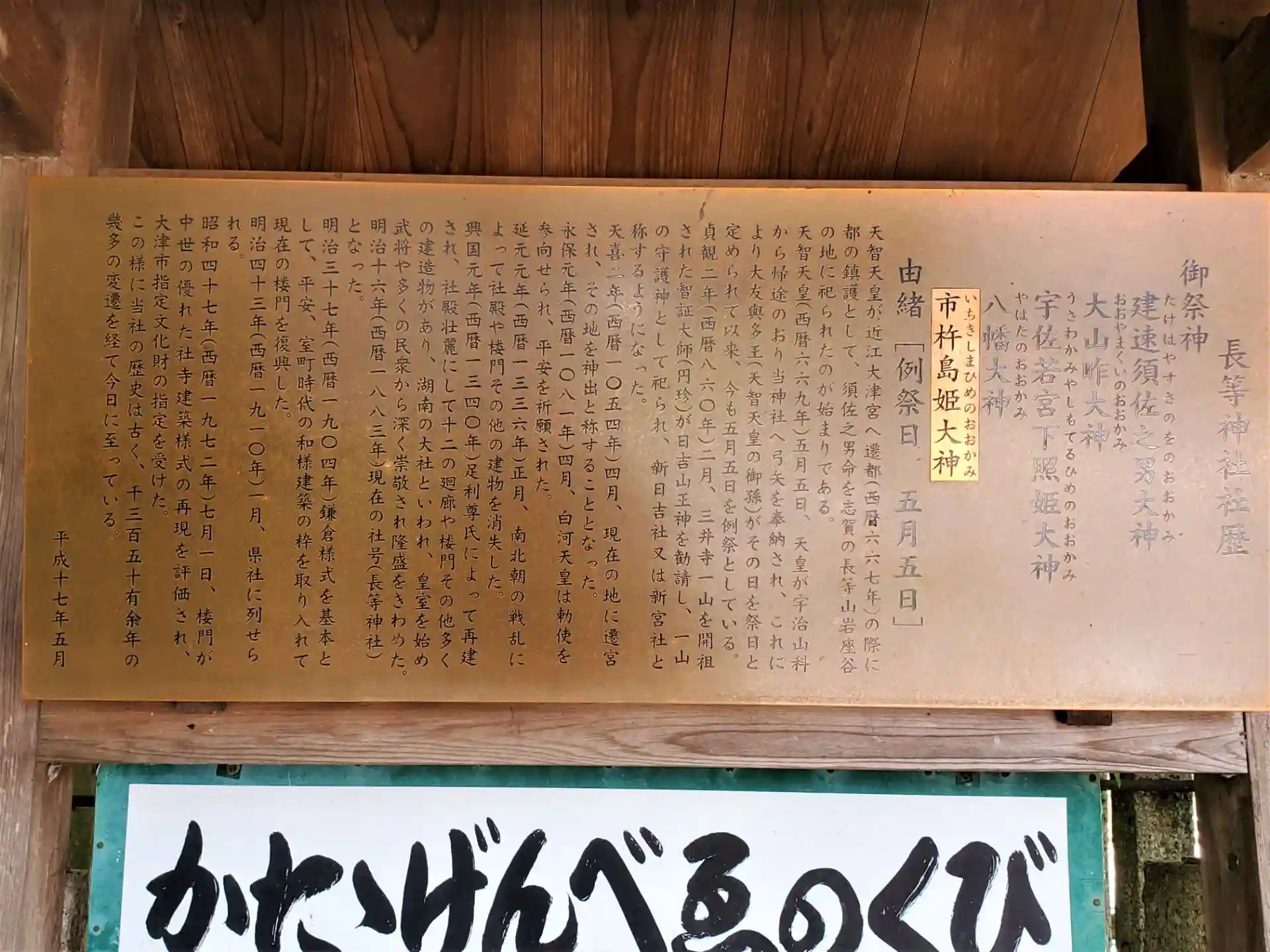 明治16年(1883年)、神仏分離令により三井寺から独立して「長等神社」と改めました。